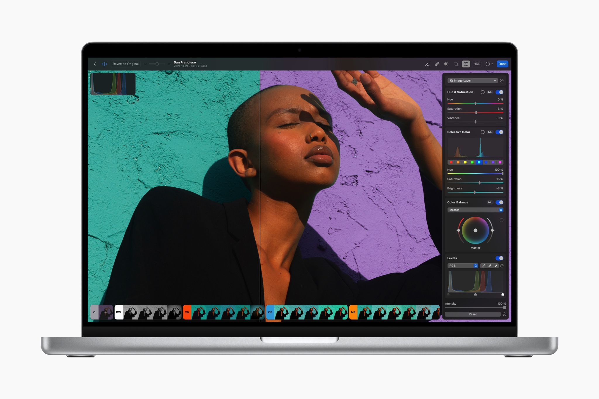 Photomator chứa các công cụ hỗ trợ máy học giúp các tác vụ chỉnh sửa nâng cao được sắp xếp hợp lý và liền mạch.