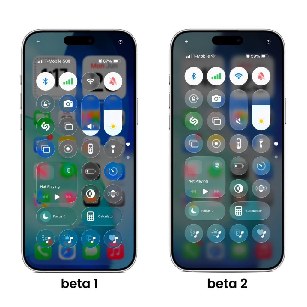 Đáp lại, trong bản beta 2 phát hành ngày 23/6, Apple đã giảm mức độ trong suốt mặc định ở các khu vực quan trọng trong giao diện người dùng. Độ đục tăng lên, giúp menu, nút gạt và biểu tượng dễ phân biệt hơn, đặc biệt trên nền sáng hoặc hình nền nhiều chi tiết. Mặc dù vẫn giữ lại một phần hiệu ứng mờ, thay đổi này giúp tăng khả năng đọc mà không làm mất đi định hướng thiết kế mới.