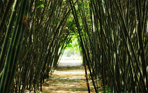 Đến với làng tre, bạn sẽ cảm thấy choáng ngộp khi chỉ thấy toàn tre là tre. Nhưng chính điều đó, nơi đây kích thích các tay máy khám phá từng ngóc ngách và chìm đắm trong ma trận tre kỳ bí với hơn 300 mẫu tre, trúc, nứa thuộc 17 giống từ Bắc chí Nam. Hãy thử thách thức bản thân phân biệt từng loại tre bằng những cái chạm nhẹ vào thân cây và hít thật sâu để tận hưởng không khí trong lành, giải tỏa áp lực cũng như cảm nhận các chất liệu thiên nhiên giúp cho việc sáng tạo trở nên phong phú hơn.