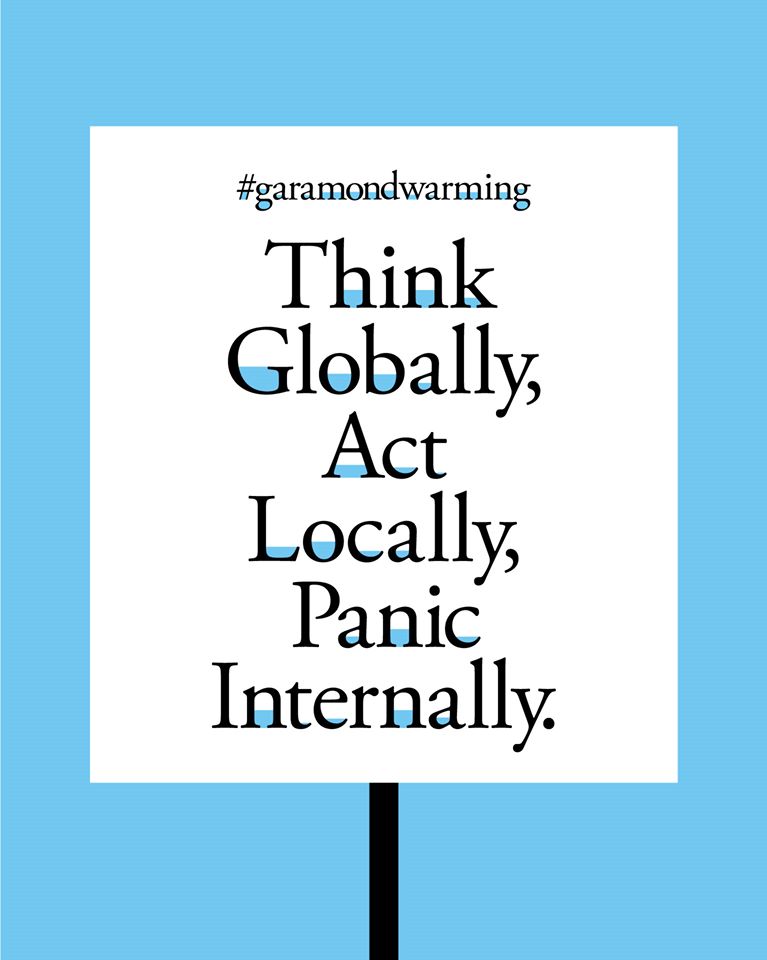 Yiğit Karagöz, giám đốc nghệ thuật cao cấp tại Scholz & Friends ở Hamburg, đã phát hành một phông chữ có thể tải xuống miễn phí trong tuần này có tên là Garhua Warming, một khuynh hướng về phong cách phông chữ cổ điển mà theo nghĩa đen là mô tả từng nhân vật bị ngập lụt. Thiết kế có các chữ cái với nhiều mức độ tô màu khác nhau trong khẩu độ của chúng. Thiết kế typography cho các khoảng trống của ký tự được bao bọc một phần hoặc hoàn toàn bởi các mảng màu và trông chúng như đang bị ngập lụt. (ví dụ: ở giữa chữ O hoặc hoặc U).