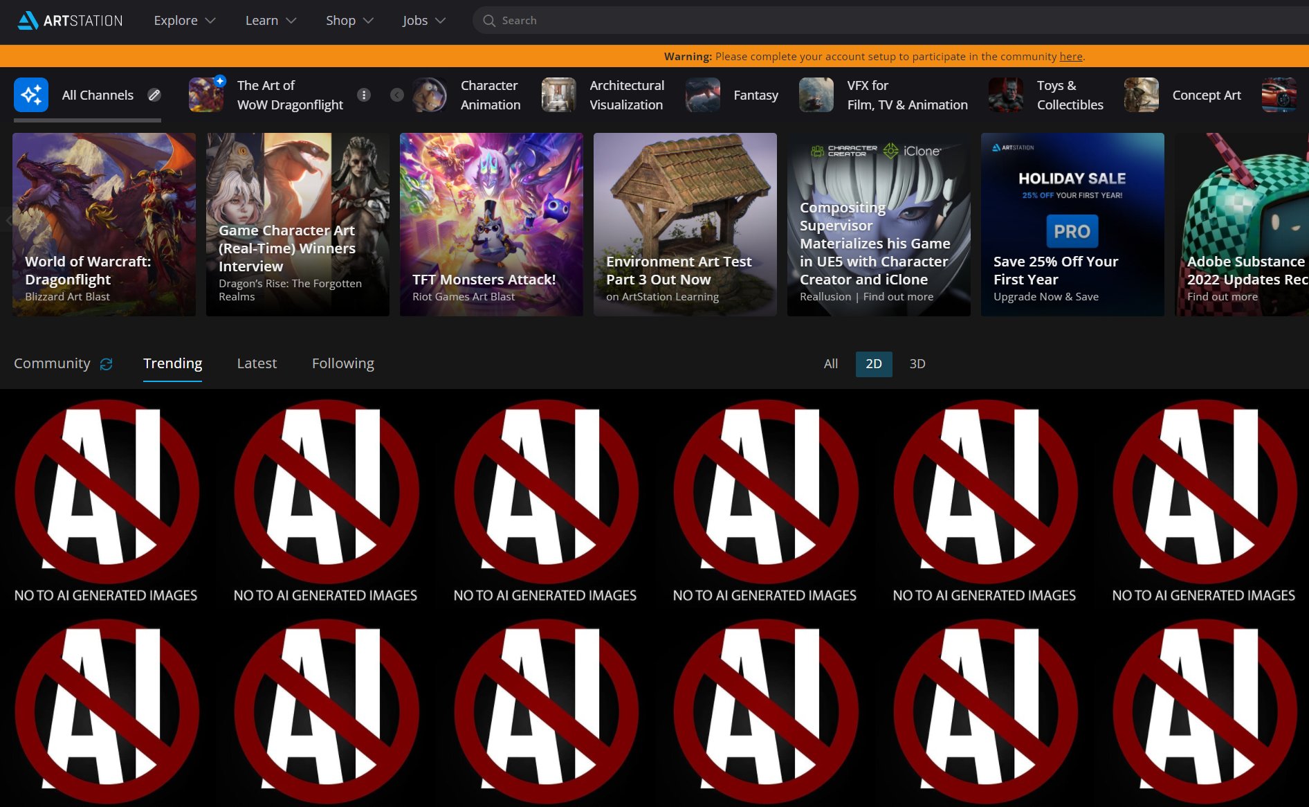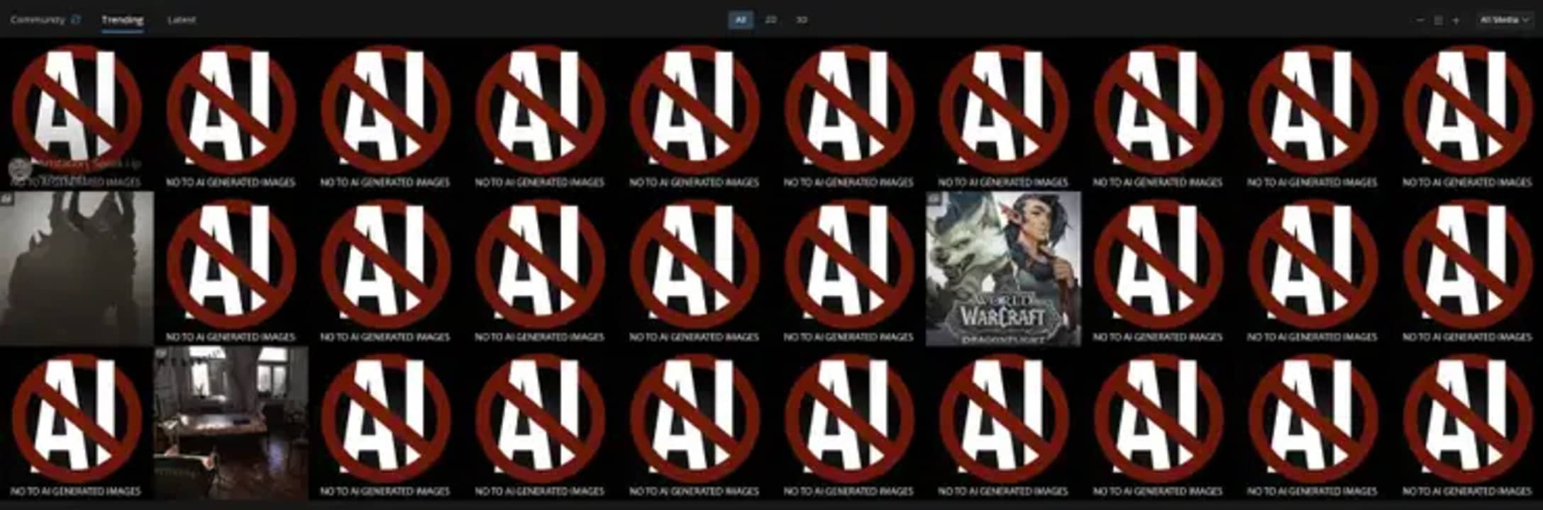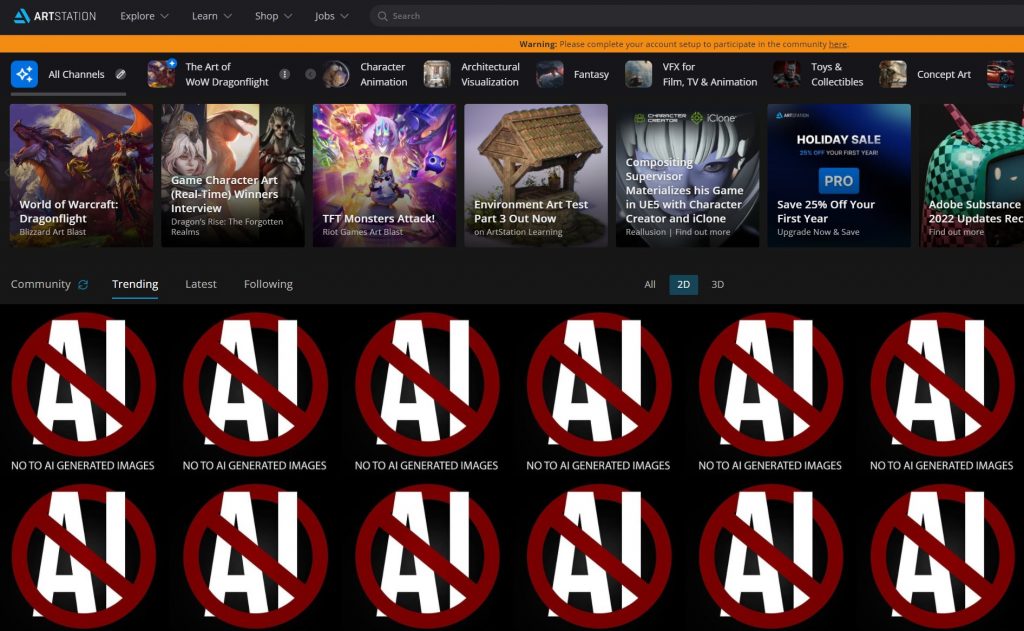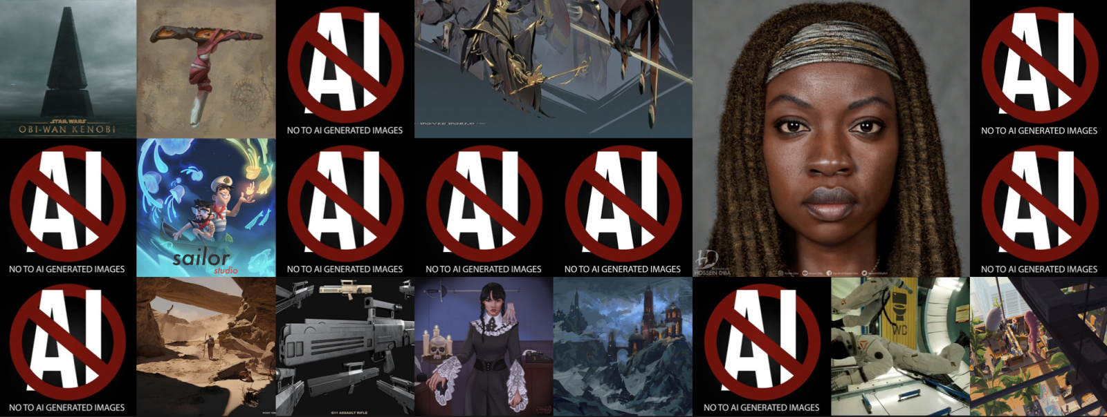 Một cuộc phản đối do họa sĩ minh họa Nicholas Kole và nhà thiết kế trang phục Imogen Chayes châm ngòi, sử dụng bức hình của nghệ sĩ Alexander Nanitchkov với ý nghĩa “Nói không với hình ảnh do AI tạo ra” đã liên tục được chia sẻ lại bởi hàng trăm nghệ sĩ và khiến cho trang nhất của ArtStation hiện tràn ngập các hình ảnh phản đối AI này.