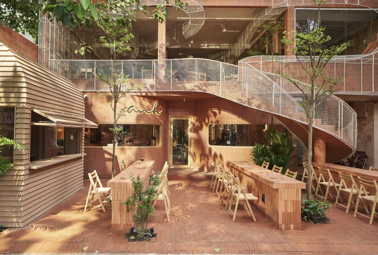 Anh Coffee Roastery thu hút ánh nhìn với thiết kế phiêu bồng hoà quyện cùng màu gạch đất nung nổi bật