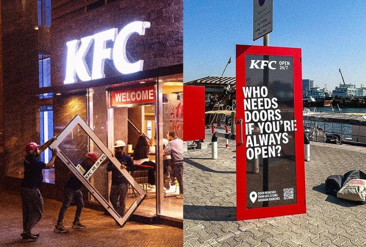 KFC tháo bỏ cửa ra vào nhà hàng để quảng bá dịch vụ mở cửa xuyên đêm, 24/7