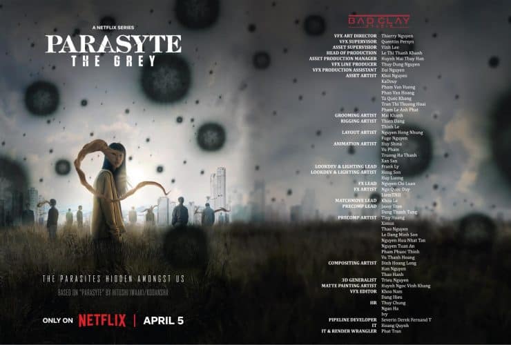 Ekip hơn 50 nhân sự Việt từ Bad Clay Studio tự hào xuất hiện trên credit phim Parasyte: The Grey với những cảnh kỹ xảo ấn tượng
