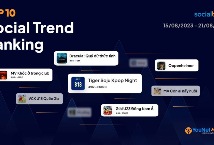 [SocialTrend Ranking] Bảng xếp hạng chủ đề đang HOT trên Mạng xã hội tuần 15/08 – 21/08/2023 từ YouNet Media
