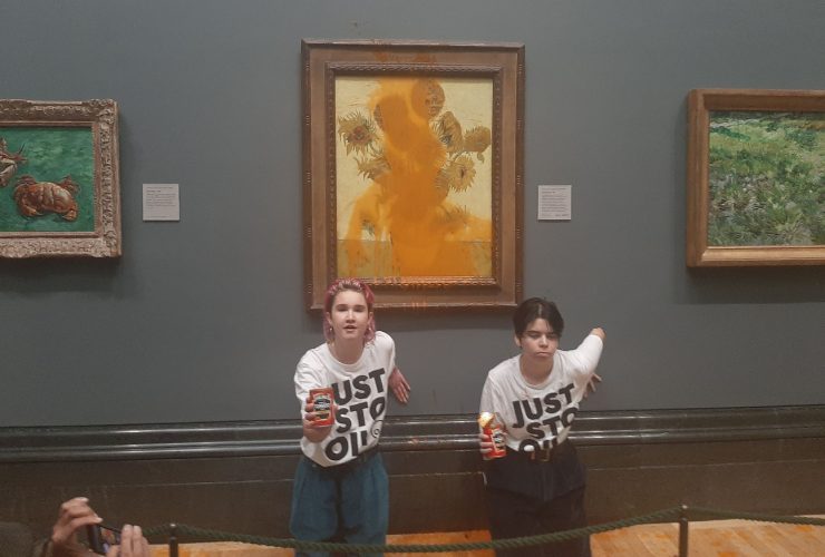 Bức hoạ kinh điển Hoa Hướng Dương của Van Gogh bị tạt sốt cà chua