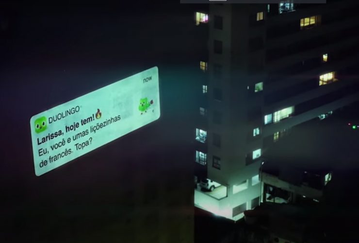 Để nhắc nhở mọi người học ngoại ngữ, Duolingo chơi lớn chiếu hẳn thông báo khổng lồ lên các tòa nhà ở São Paulo