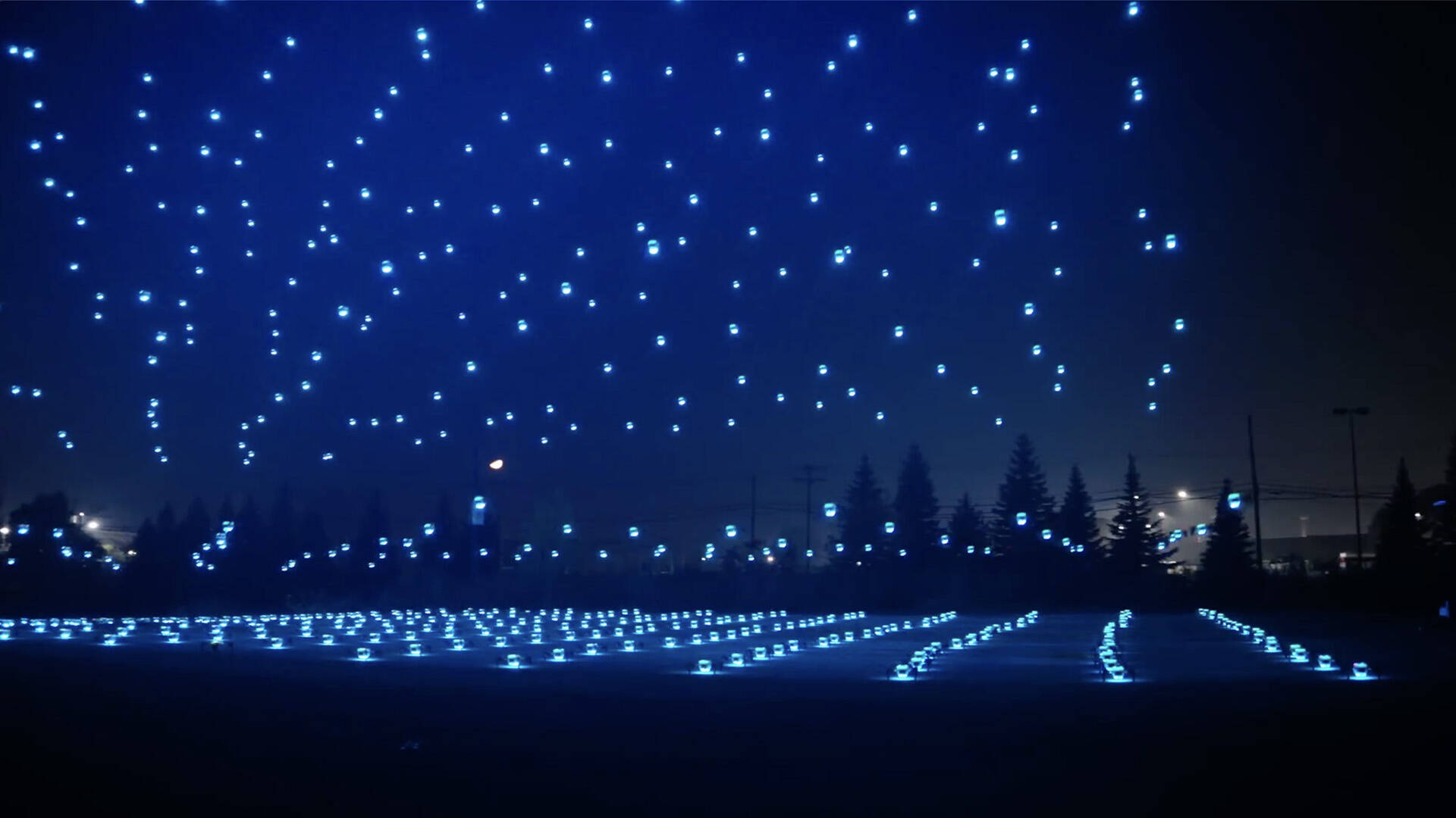 Bên cạnh đó còn là màn trình diễn ánh sáng thực hiện bởi hơn 600 chiếc drones được lập trình biên đạo để tạo ảnh động ấn tượng phía bên trên màn chiếu hologram. Mỗi máy bay không người lái đều được trang bị đèn LED có thể thay đổi màu sắc để tạo nên logo Avatar ấn tượng.