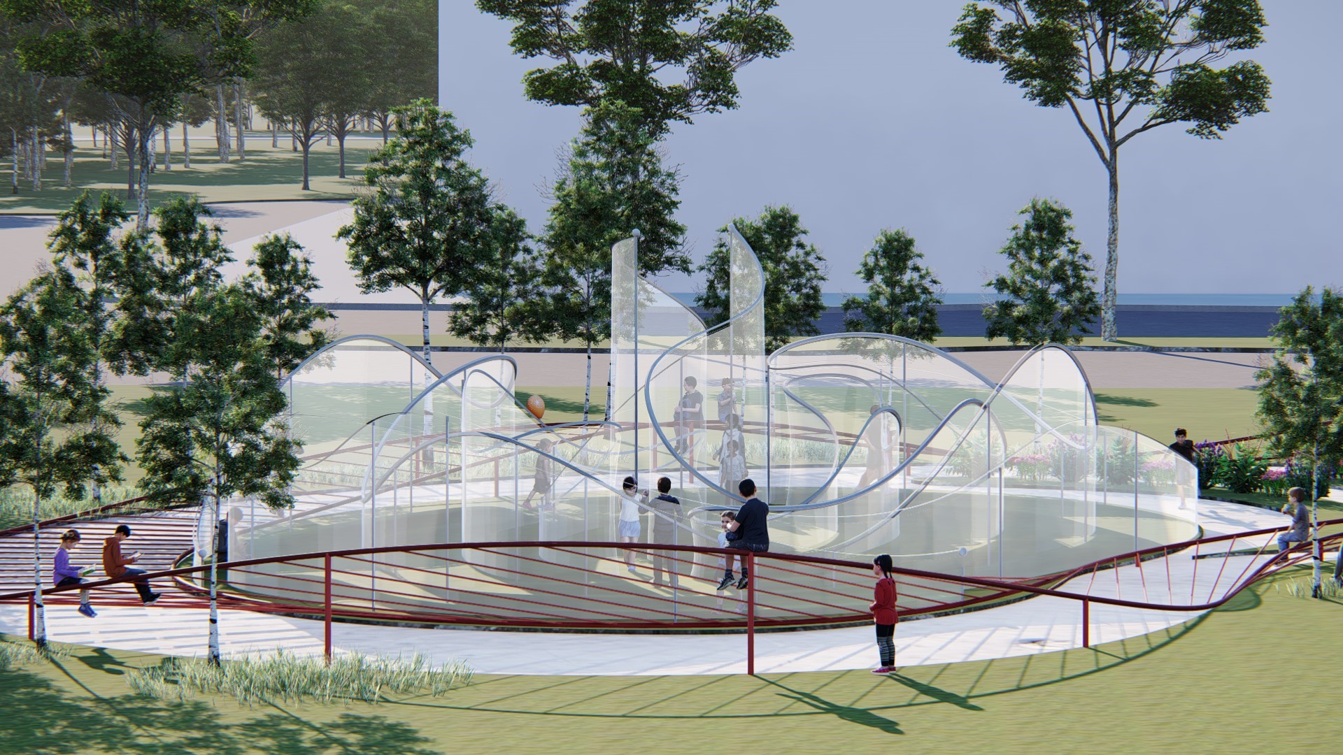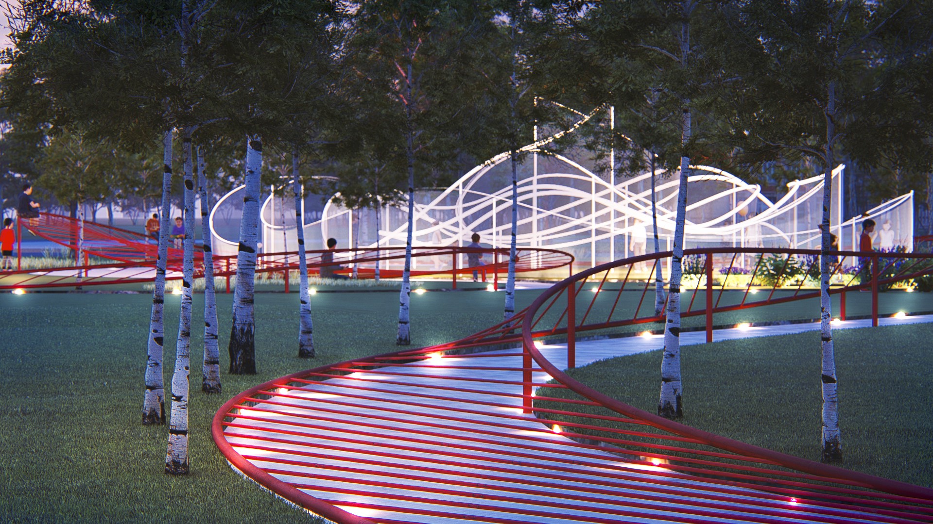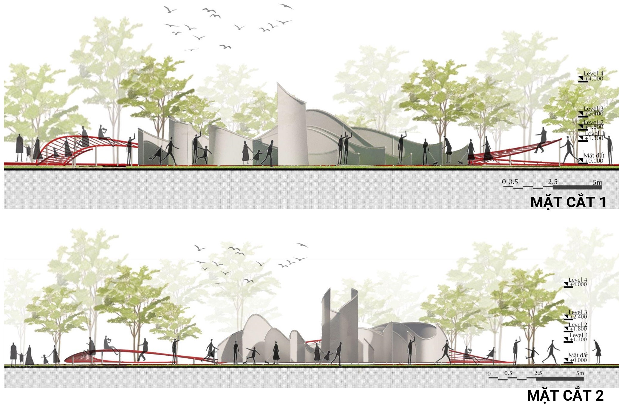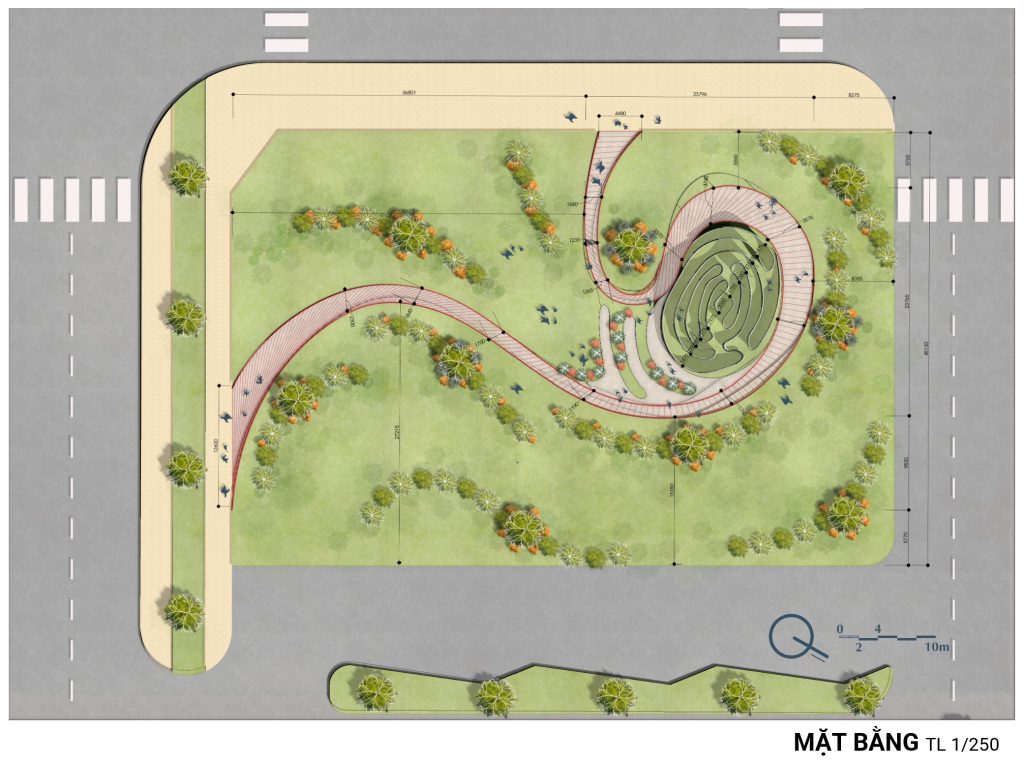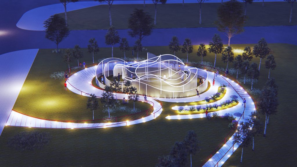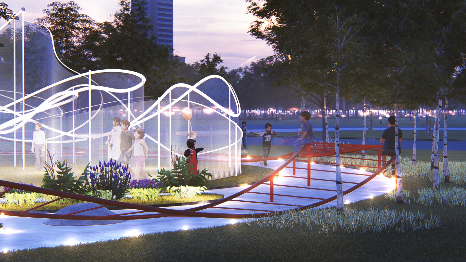 Công trình được thiết kế với lối đi trải dài trên khu đất có sự biến đổi cao độ, được lót nền cát và mê cung ánh sáng. Nhằm tạo ra không gian vui chơi hiện đại, gần gũi và hòa hợp với thiên nhiên.