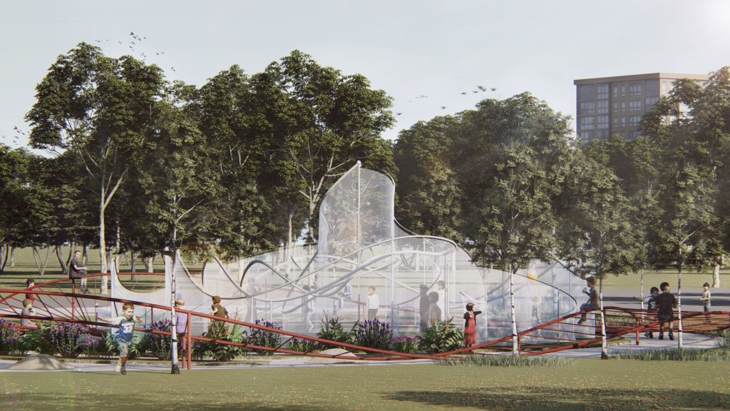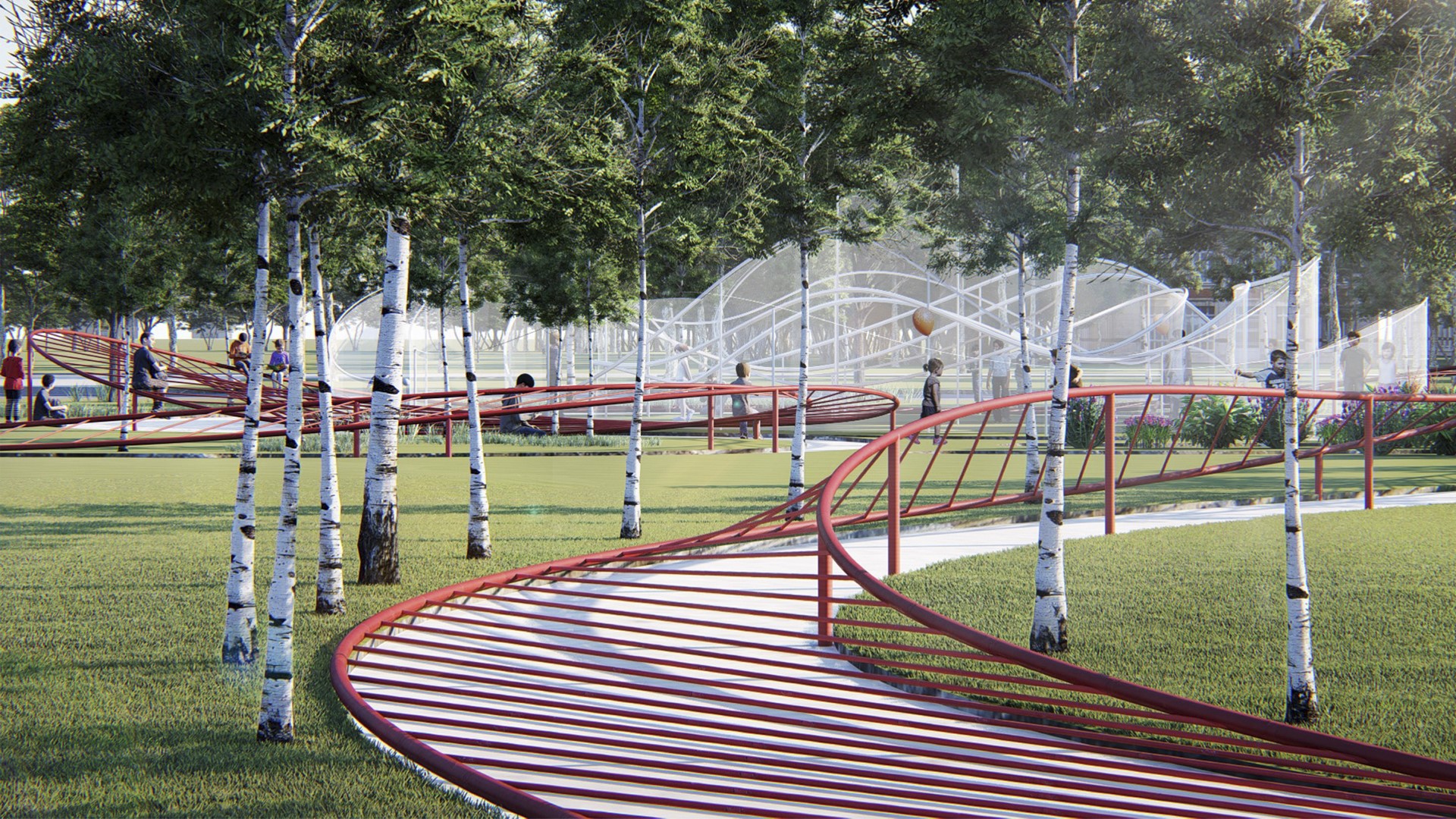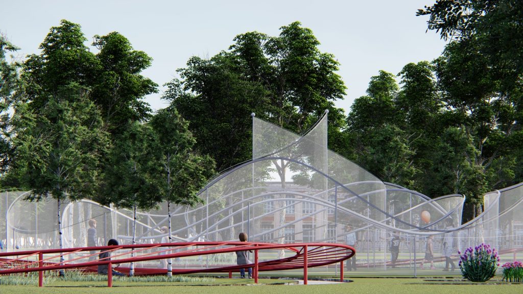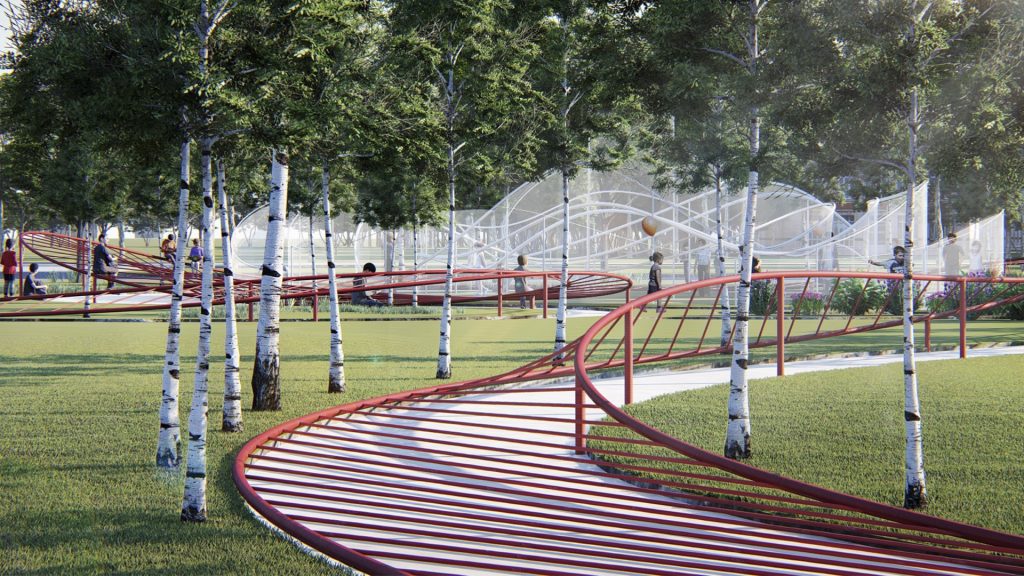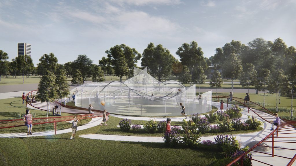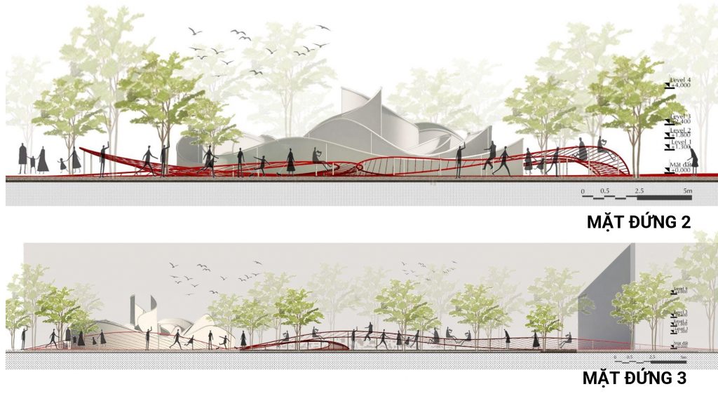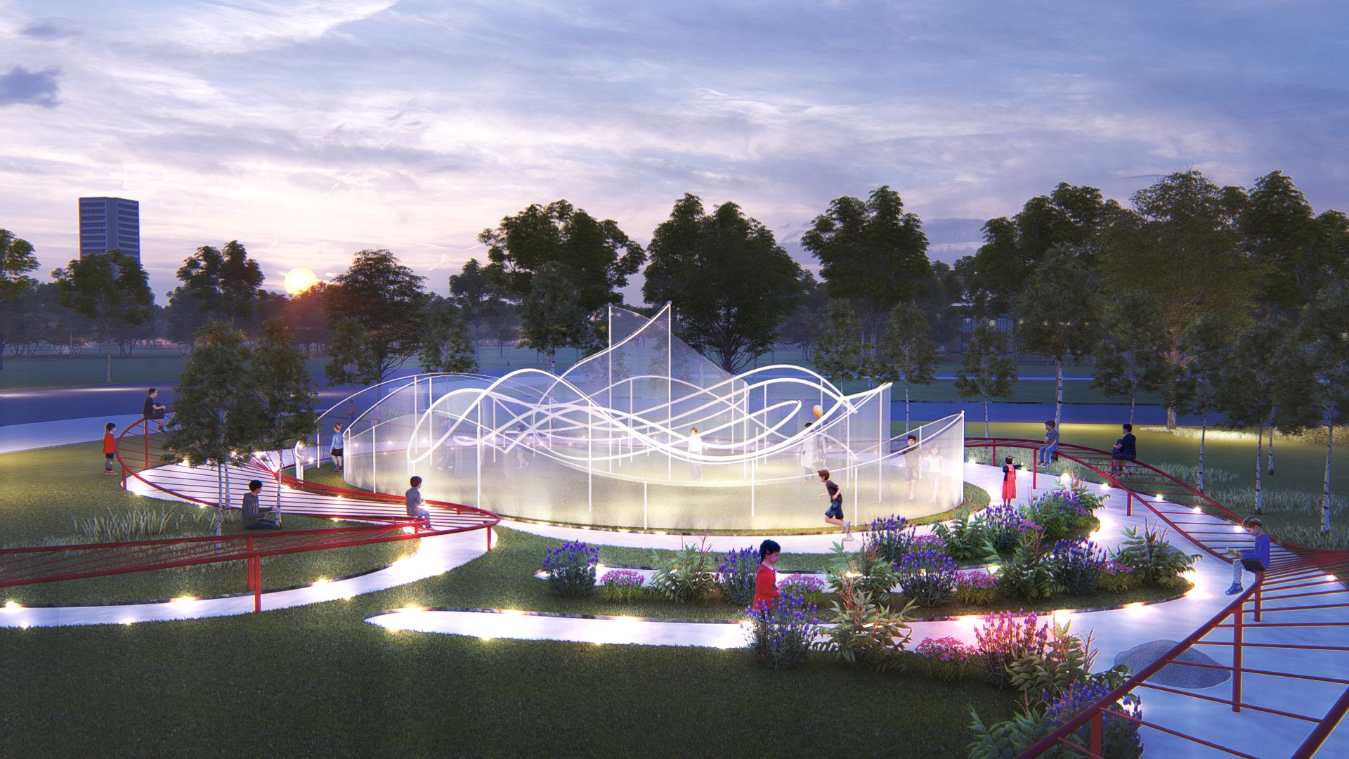 Công trình được thiết kế với lối đi trải dài trên khu đất có sự biến đổi cao độ, được lót nền cát và mê cung ánh sáng. Nhằm tạo ra không gian vui chơi hiện đại, gần gũi và hòa hợp với thiên nhiên.