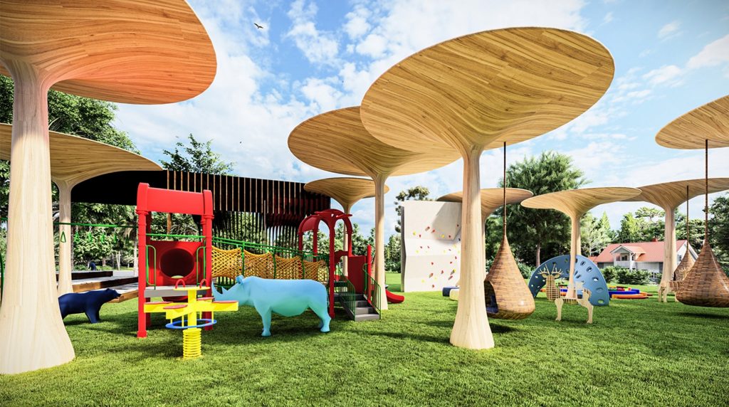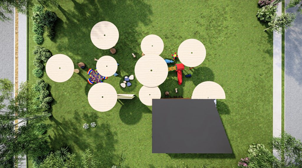 Những tán Ô lớn tạo bóng râm cho không gian, bảo vệ trẻ em khỏi những ngày nắng nóng.