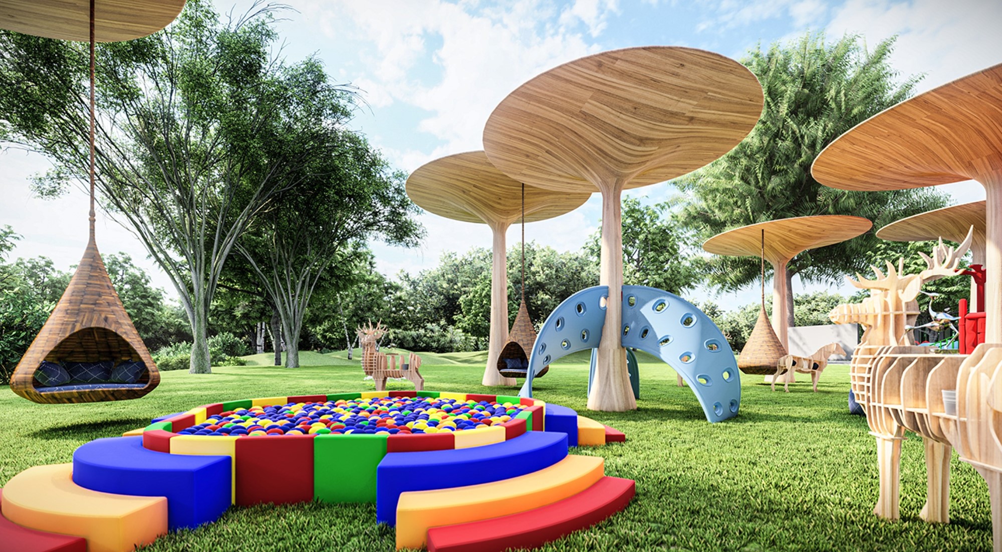 Nương theo sự đổi mới của thời đại, giáo dục trẻ em không chỉ gói gọn trong lớp học mà còn phát triển đến vô hạn trên những sân chơi. Ô được thiết kế để khơi dậy sự tò mò và đam mê khám phá, học hỏi của trẻ em, đồng thời tạo ra một không gian thúc đẩy các hoạt động giao lưu trong cộng đồng cư dân.