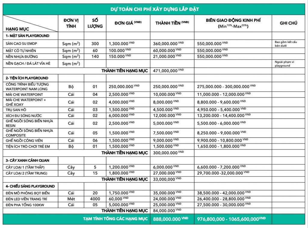 DỰ TOÁN CHI PHÍ XÂY DỰNG, LẮP ĐẶT VÀ VẬN HÀNH