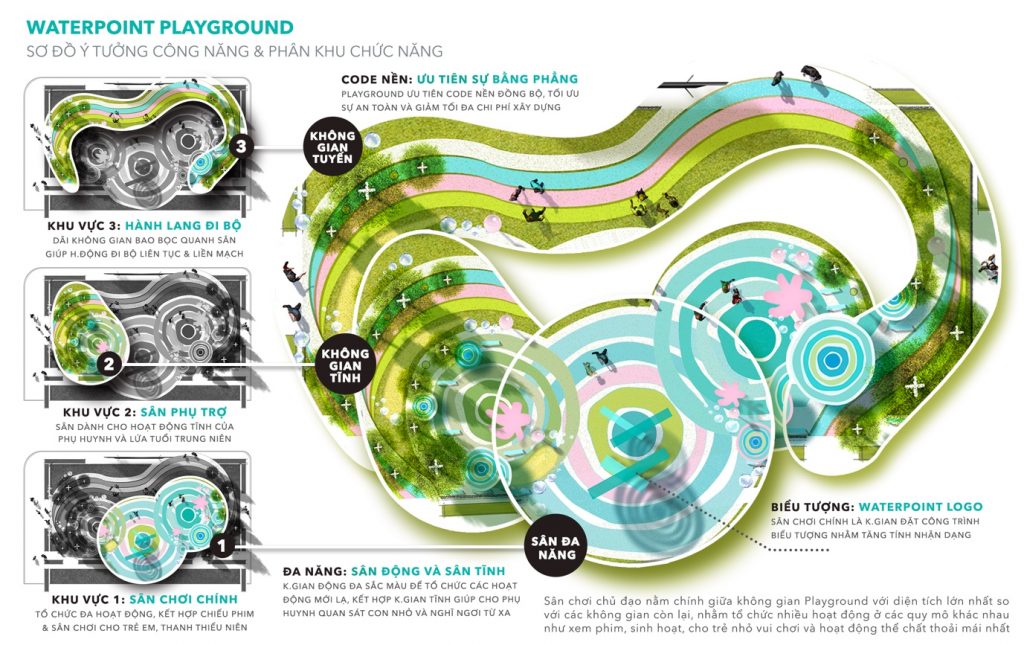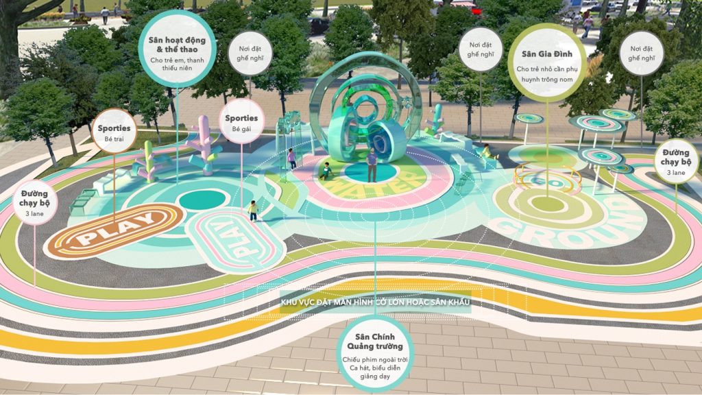Ý tưởng Playground có yếu tố “Nước” sẽ đồng nhất về mặt ý nghĩa và gần như song hành với hình ảnh Khu Đô thị Waterpoint – Thành phố bên sông.