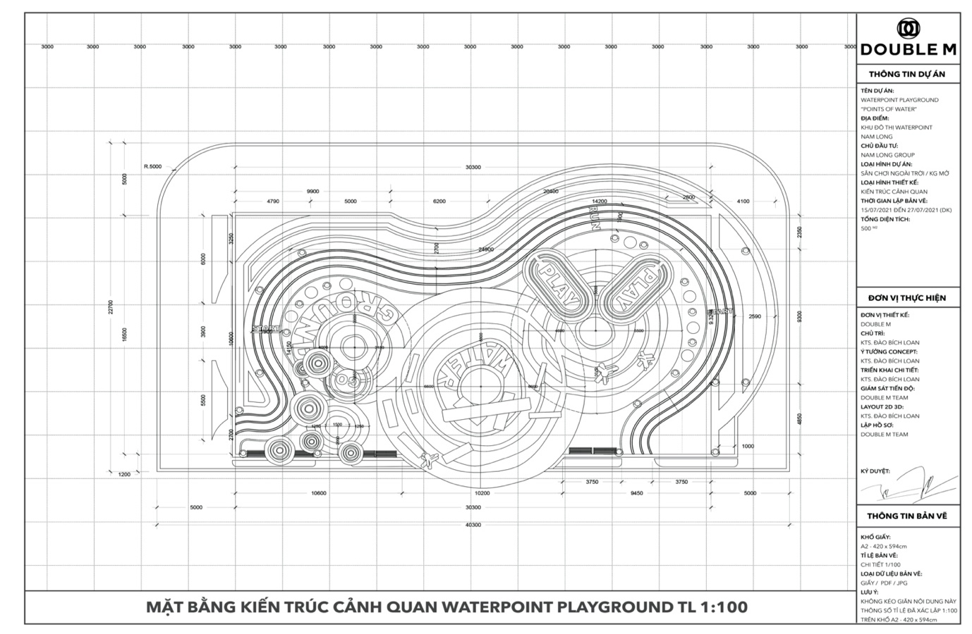 Double M và tác giả chân thành cảm ơn Ban tổ chức và các đơn vị đồng hành đã tạo điều kiện tốt nhất để cuộc thị được diễn ra trọn vẹn trong tình hình dịch bệnh phức tạp, những giá trị tinh thần và mục tiêu tốt đẹp mà Nam Long Design Award 2021 mang lại cho cộng đồng là hết sức ý nghĩa. Mong rằng những ý tưởng của bài dự thi “Points of Water Playground” sẽ trở thành một phần không gian công cộng cho Khu đô thị kiểu mẫu Waterpoint Nam Long.