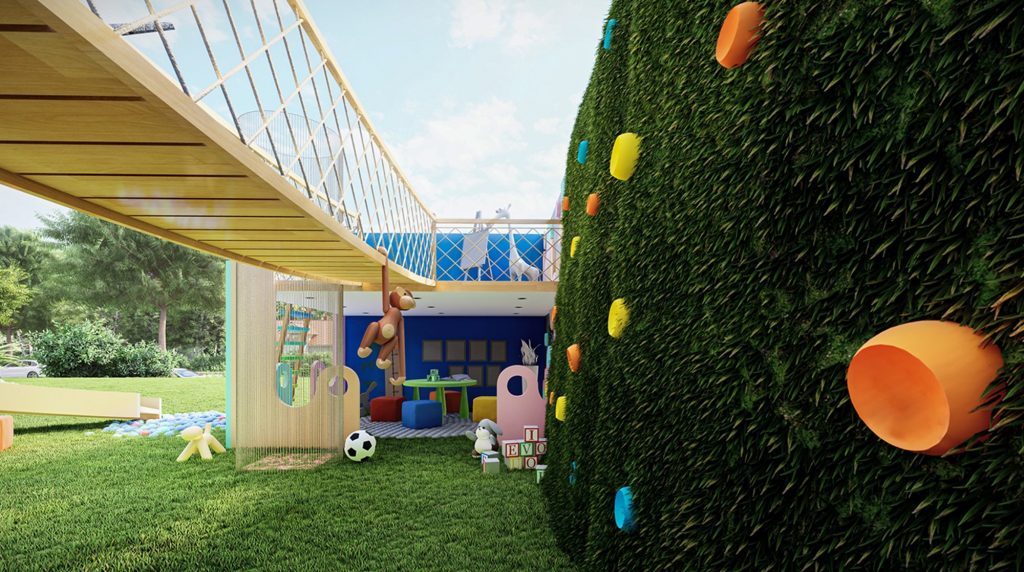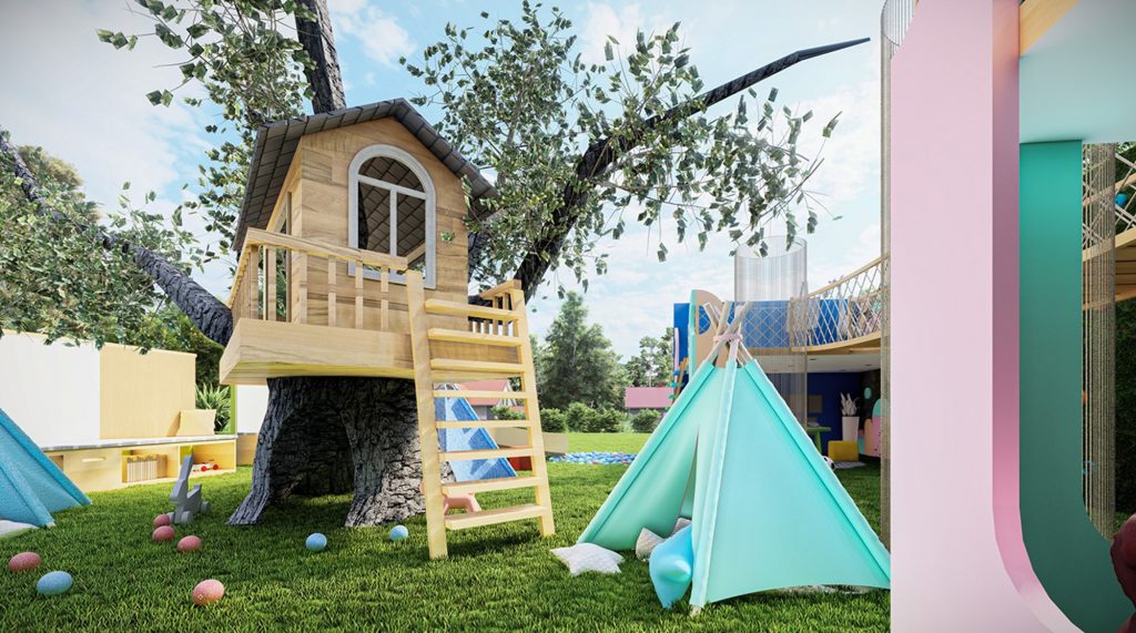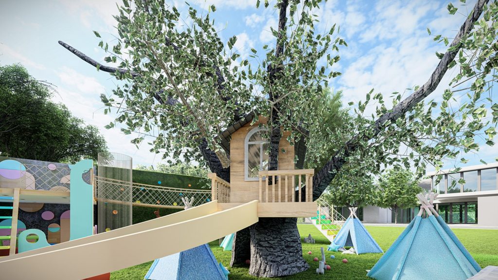 Những tán cây lớn bao quanh tạo nên bầu không khí trong lành, khoan khoái. Từ bố cục trang thiết bị cho đến phong cách thiết kế, tất cả đều thể hiện được sự năng động và thoải mái. Cùng với đó là lợi thế về mặt địa hình, Nấp mang lại cho trẻ em một không gian rộng rãi để tự do vận động, vui đùa mà không phải nghĩ ngợi bất cứ điều chi.