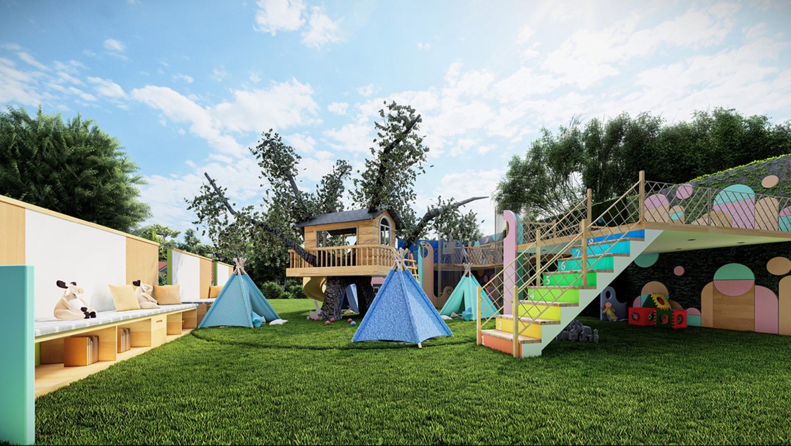 Những tán cây lớn bao quanh tạo nên bầu không khí trong lành, khoan khoái. Từ bố cục trang thiết bị cho đến phong cách thiết kế, tất cả đều thể hiện được sự năng động và thoải mái. Cùng với đó là lợi thế về mặt địa hình, Nấp mang lại cho trẻ em một không gian rộng rãi để tự do vận động, vui đùa mà không phải nghĩ ngợi bất cứ điều chi.