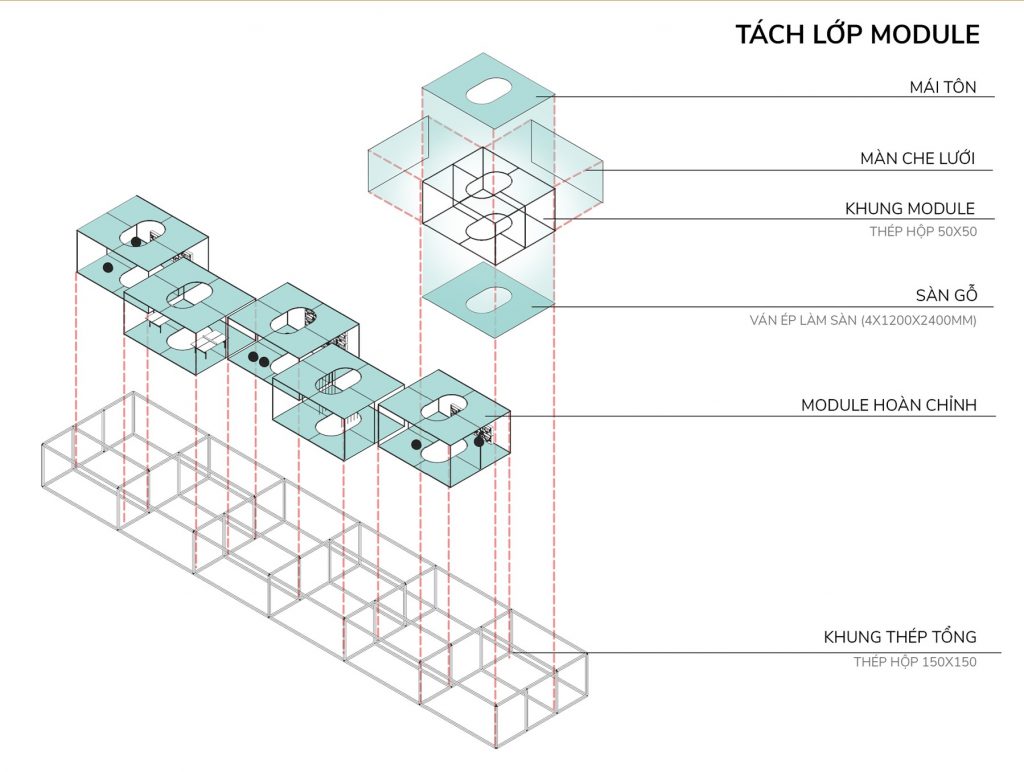 - Mỗi ô được thiết kế linh động, nhằm tạo sự linh hoạt, biến đổi. Nâng cao tính thích ứng và di động của dự án.
