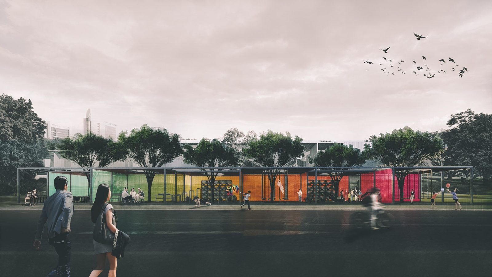 Những chiếc hộp ở đây, được thiết kế phát triển theo chiều ngang, nhằm kết nối con người trở lại với thiên nhiên. Các bức tường xi-măng giờ đây trở thành những chiếc rèm, “vén tường” để gặp gỡ nhau