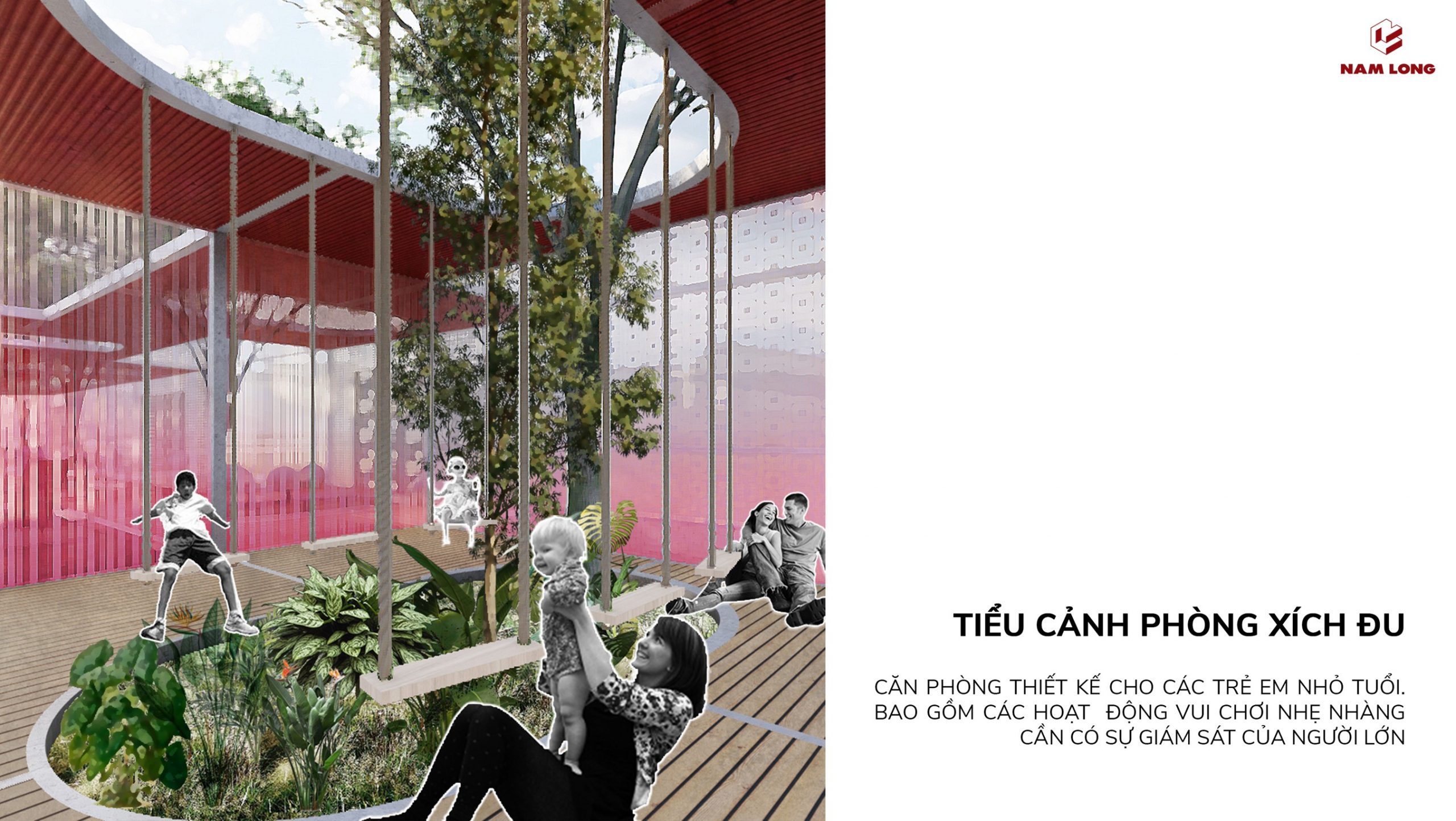 - Phòng xích đu: Thiết kế dành cho trẻ em, không gian cần sự giám sát của người lớn.