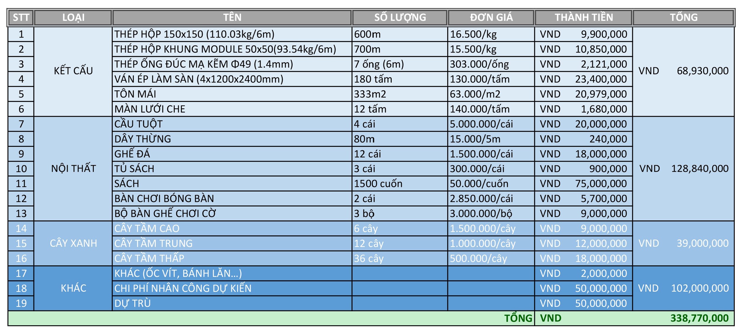 Bảng dự toán