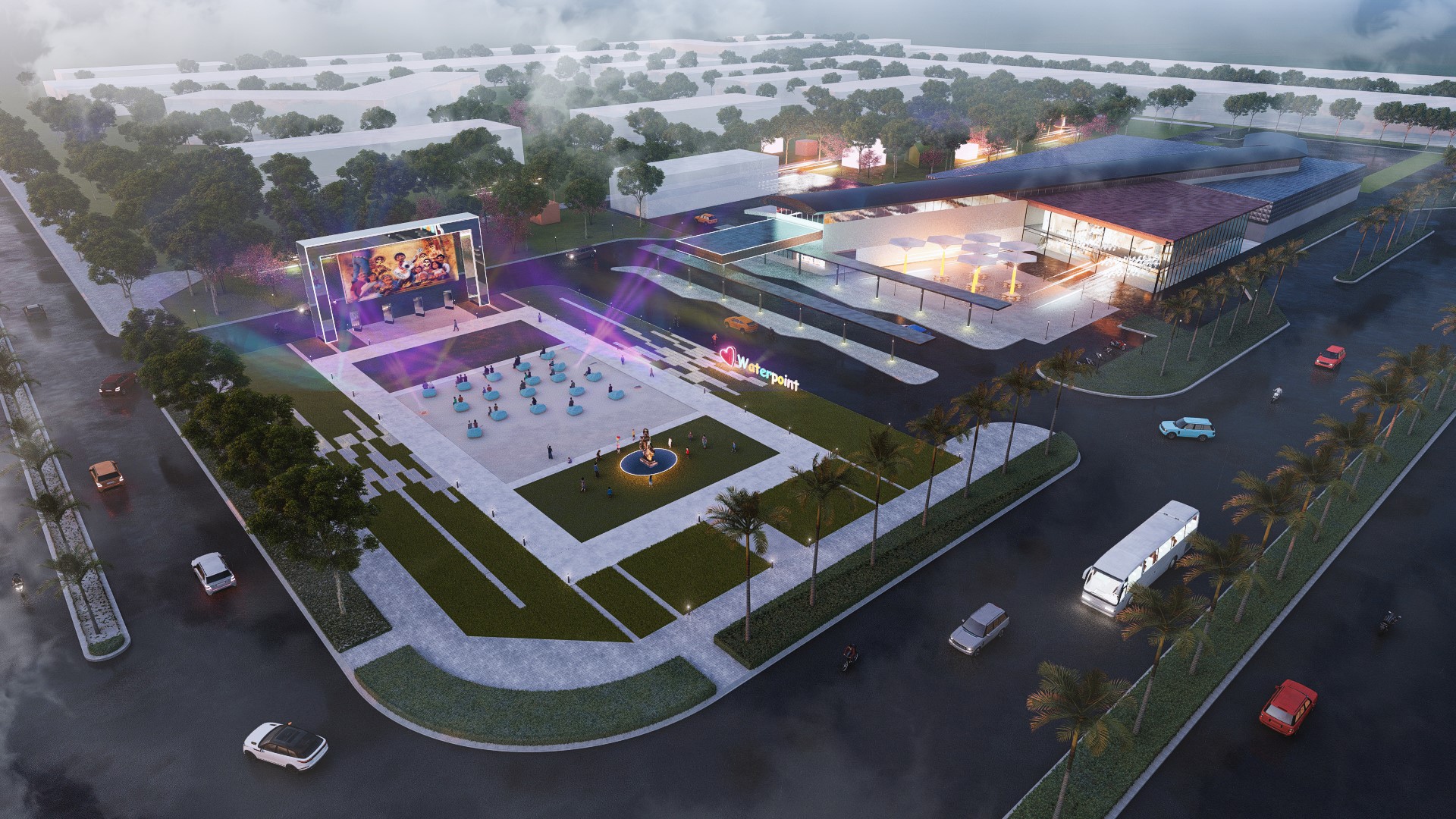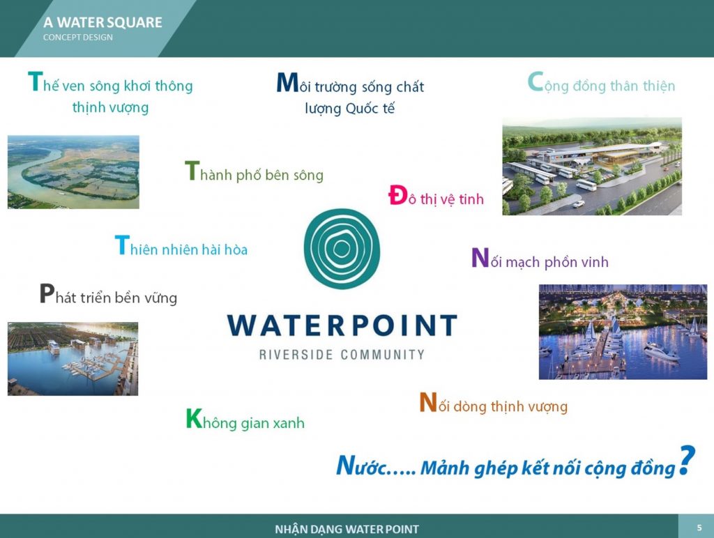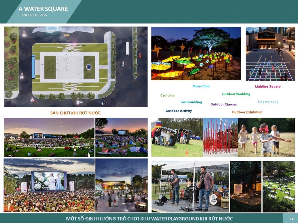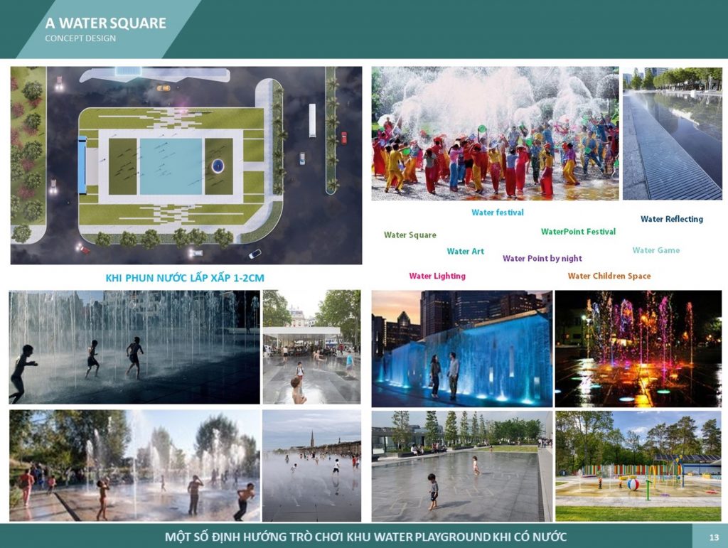 Trung tâm của dự án là một sân chơi đa năng cho các mô hình trò chơi nước, đáp ứng cho mọi lứa tuổi. Một không gian linh hoạt có thể thay đổi tùy theo sự kiện, thời gian và mục đích sử dụng…. Qua đó, dự án góp phần cộng hưởng thêm những trải nghiệm đặc biệt cho cư dân và cộng đồng thân thiện, êm ả, hạnh phúc của một đô thị bên sông giữa miền thiên nhiên an lành – đô thị kiểu mẫu WaterPoint.