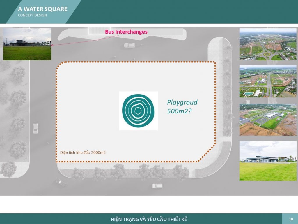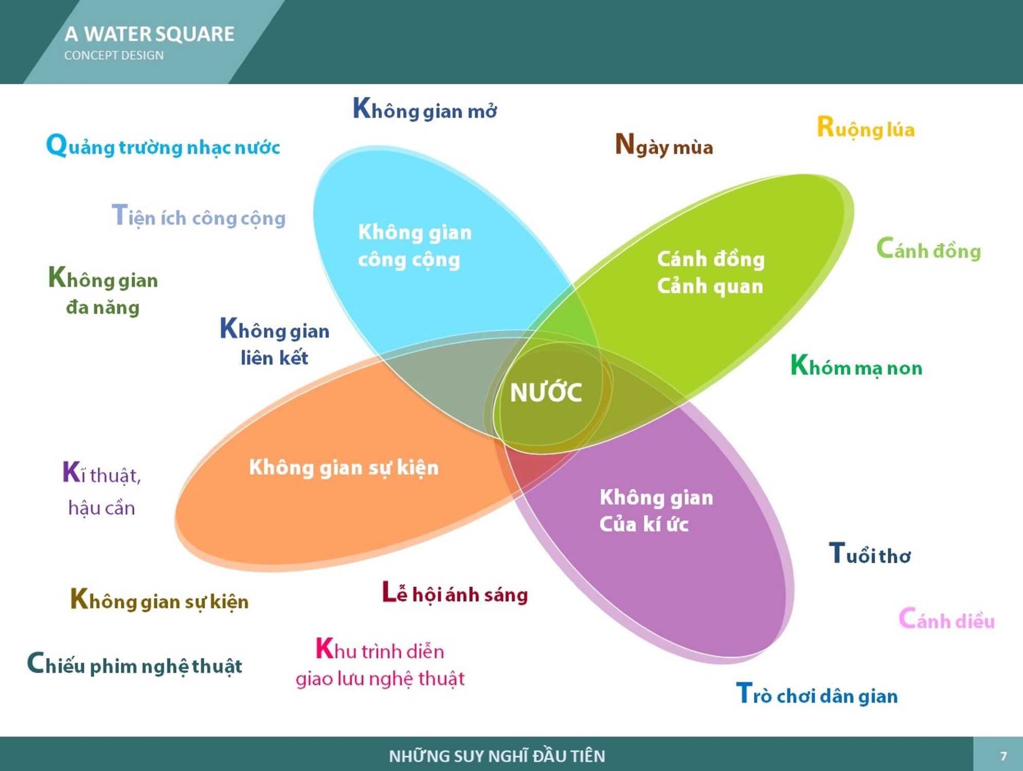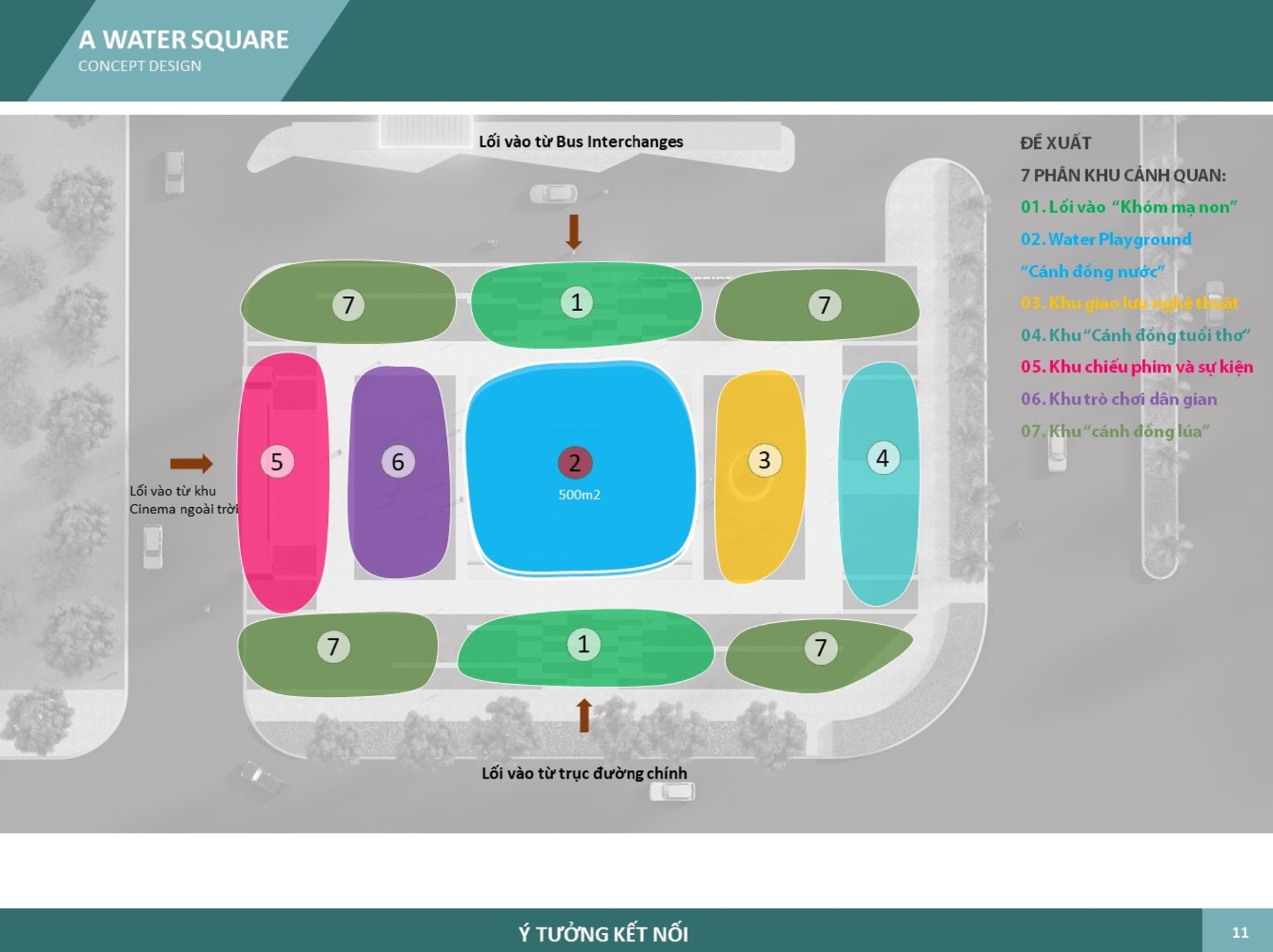 Lấy cảm hứng từ nước và những cánh đồng lúa miền Tây, A Water Square ví như một quảng trường nước khơi gợi những kí ức của một thời tuổi thơ; nơi đó có những cánh đồng mạ non, có những tiếng nô đùa và những trò chơi dân gian ùa về nơi miền quê thanh bình.