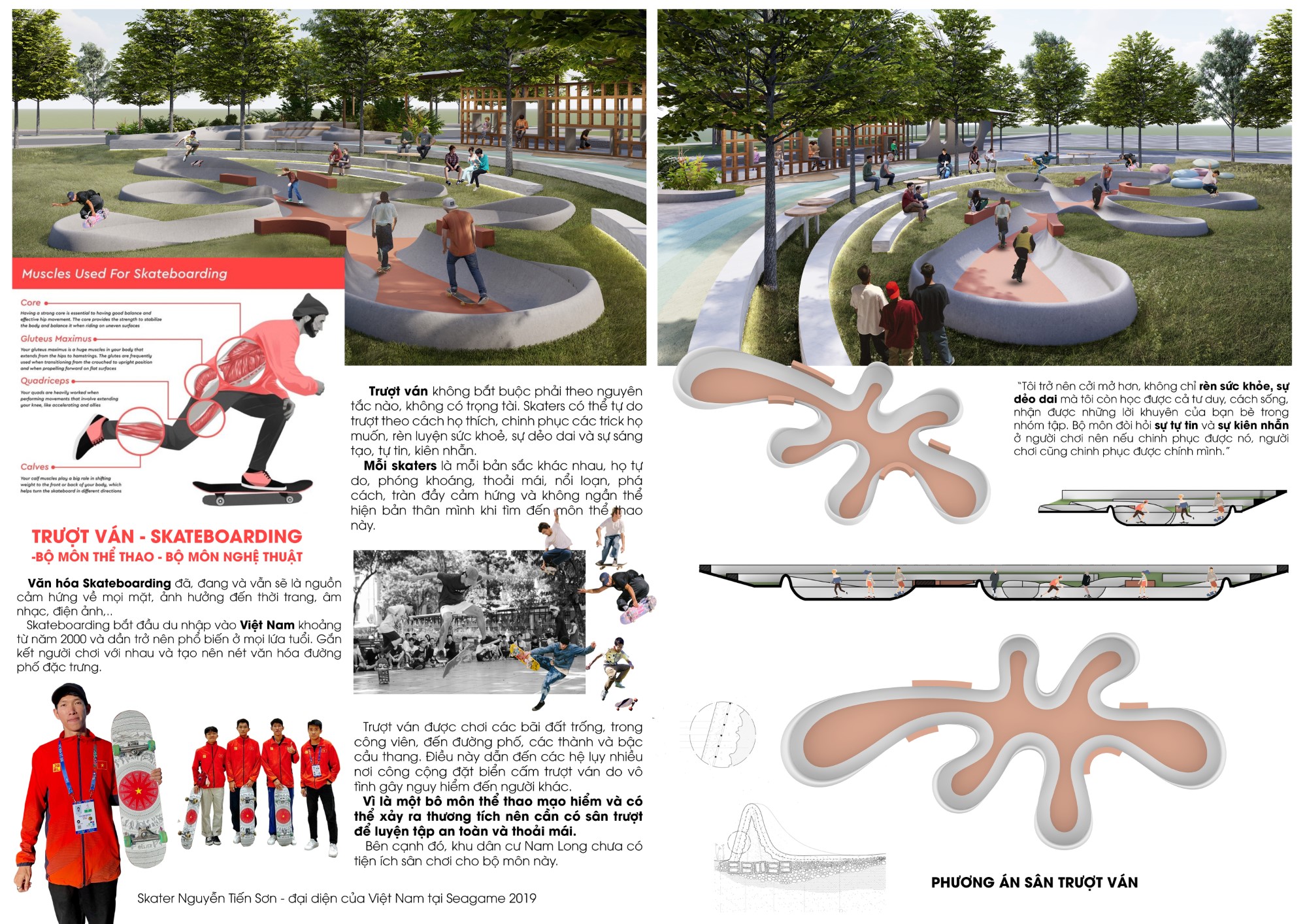 Trượt ván được chơi các bãi đất trống, trong công viên, đến đường phố, các thành và bậc cầu thang. Điều này dẫn đến các hệ lụy nhiều nơi công cộng đặt biển cấm trượt ván do vô tình gây nguy hiểm đến người khác. Vì là một bô môn thể thao mạo hiểm và có thể xảy ra thương tích nên cần có sân trượt để luyện tập an toàn và thoải mái. Bên cạnh đó, khu dân cư Nam Long chưa có tiện ích sân chơi cho bộ môn này.