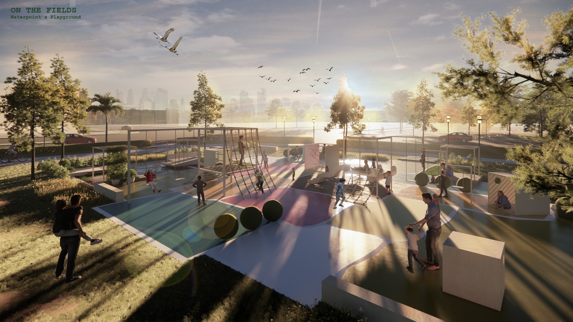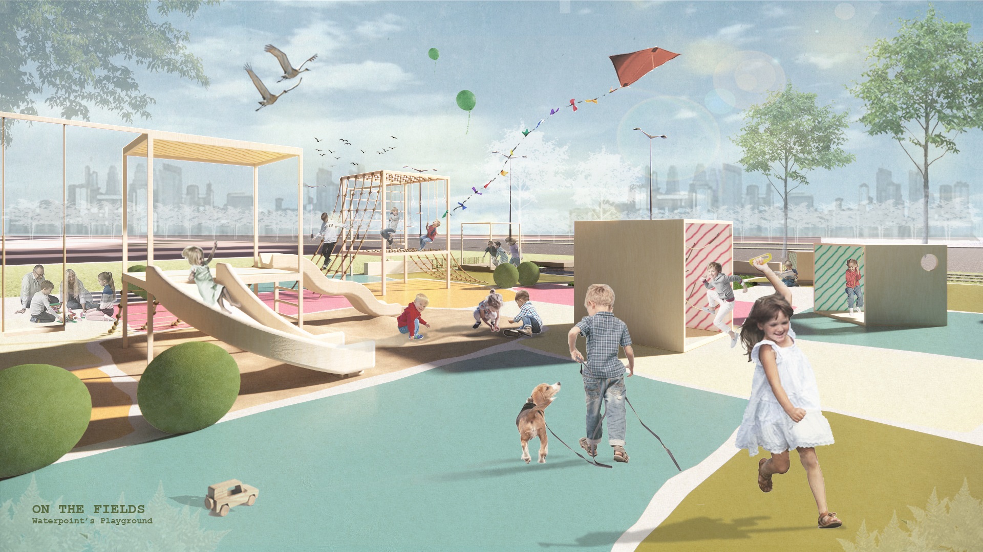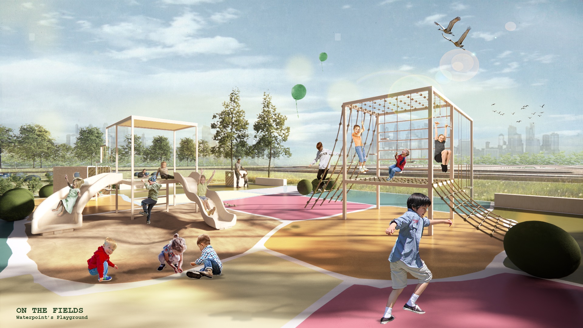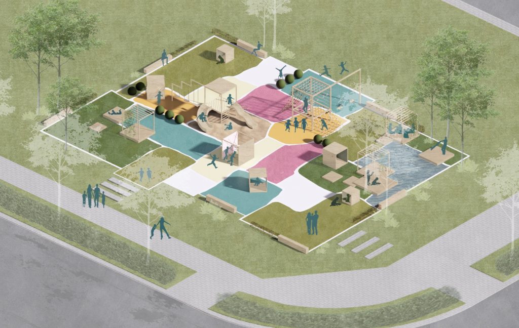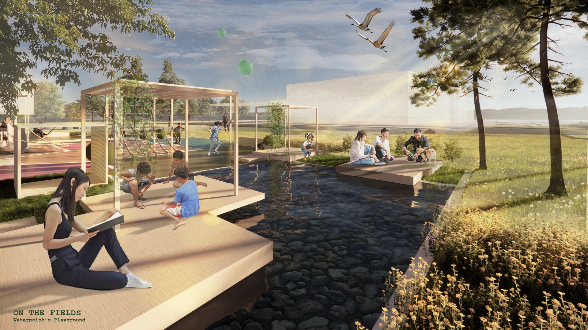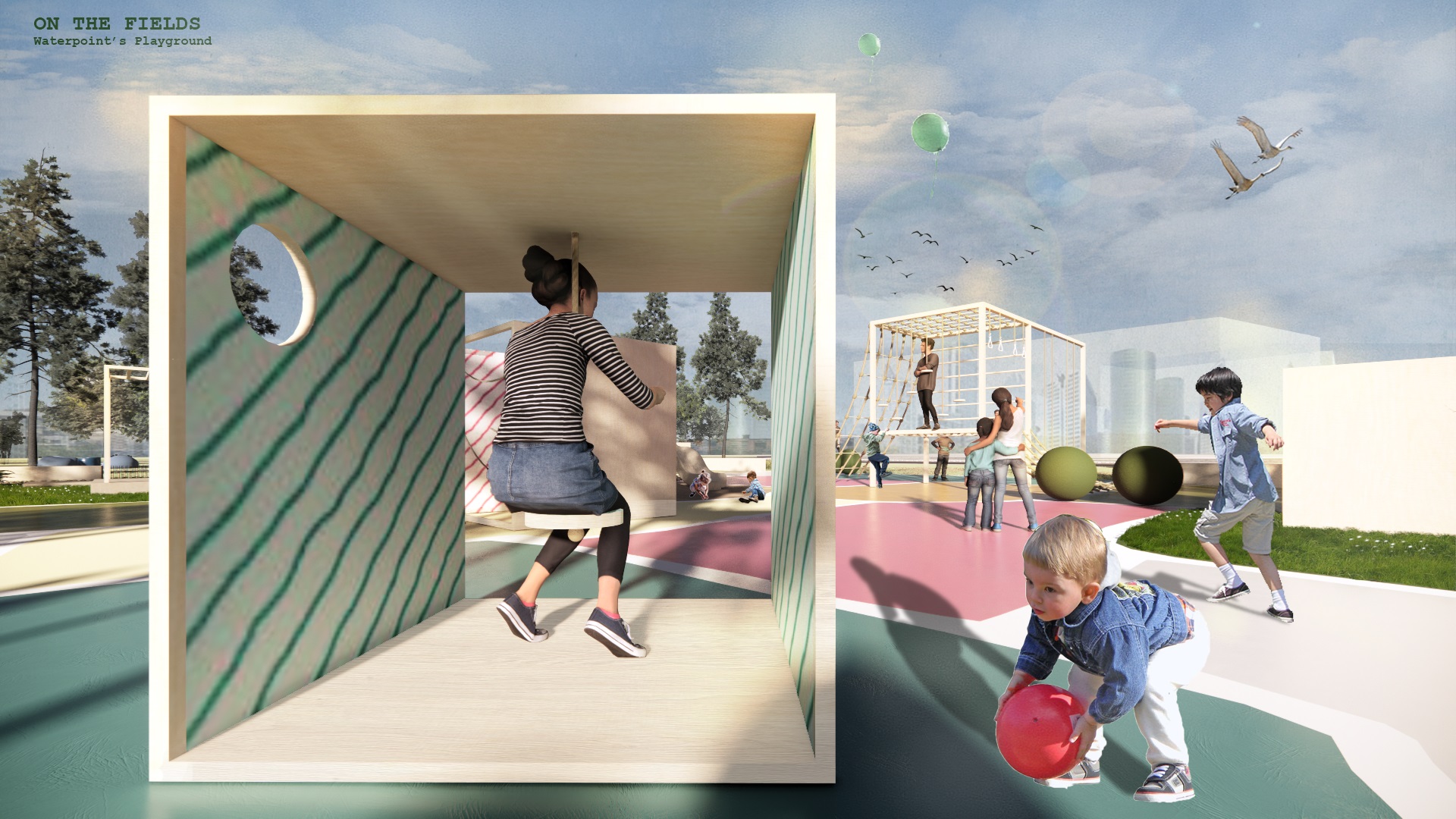 Lấy cảm hứng từ những thửa ruộng, những cánh đồng hoa màu trong cuộc sống người Việt và cả hình tượng những mảnh đất riêng của mỗi người. Thiết kế playground chú trọng vào các yếu tố: Kết nối – Dẫn dắt – Đa dạng – An toàn.