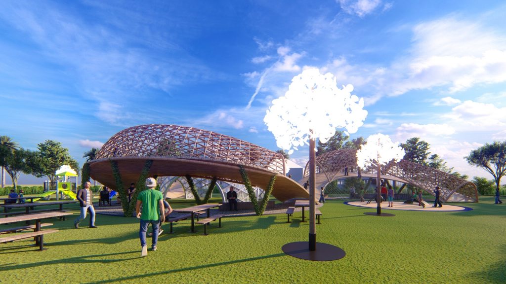 Sử dụng vật liệu truyền thống vòm kết cấu tre tạo an toàn cho trẻ em vận động ở đường chạy trên cao.