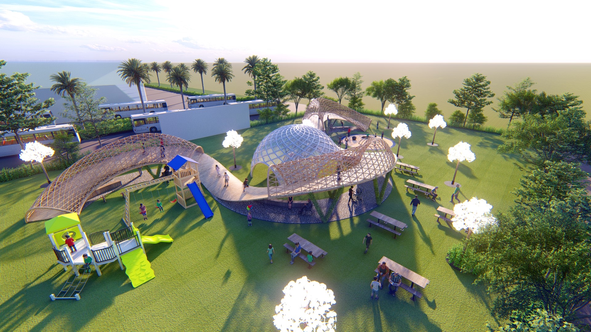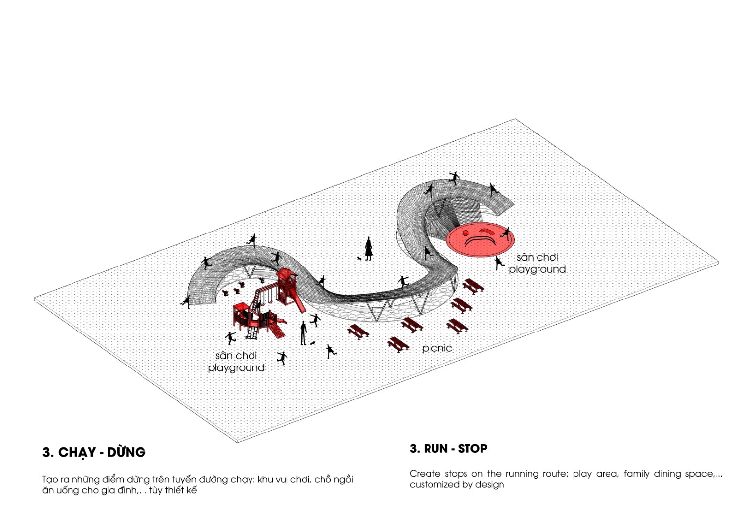 Tạo ra những điểm dừng trên tuyến đường chạy: khu vui chơi, chỗ ngồi ăn uống cho gia đình,… tùy thiết kế.