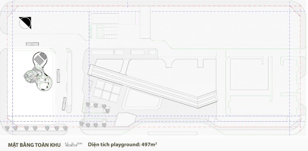 Các vùng xanh (bãi cỏ) – cote 0.000 như các vùng đệm, báo hiệu giảm tốc độ hoặc nơi ngồi bệt thư giãn (do tính chất động tĩnh đối lập giữa nước và đất)