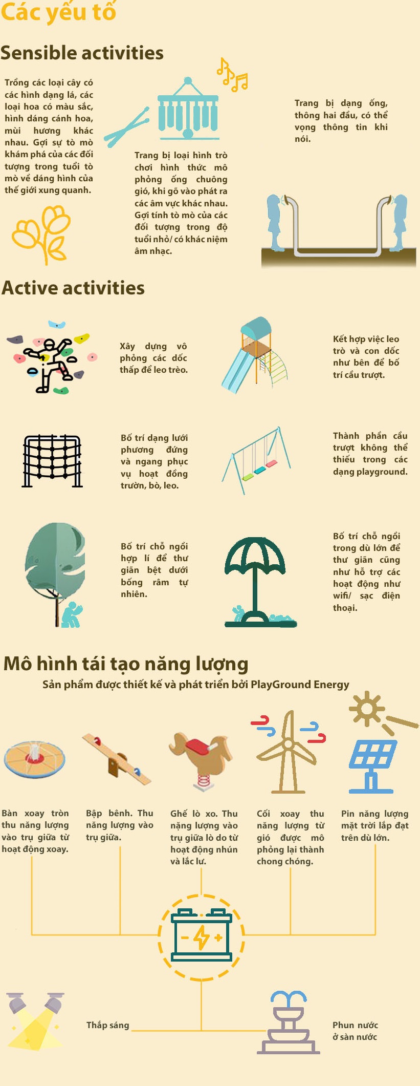 Khu vực các đơn vị trò chơi được sử dụng để tự tạo năng lượng cung ứng cho hoạt động thắp sáng và sàn phun nước vào những lúc cần thiết. Tạo nên một khu vui chơi tự cung tự cấp về mặt năng lượng bền vững, khoa học và bảo vệ môi trường.
