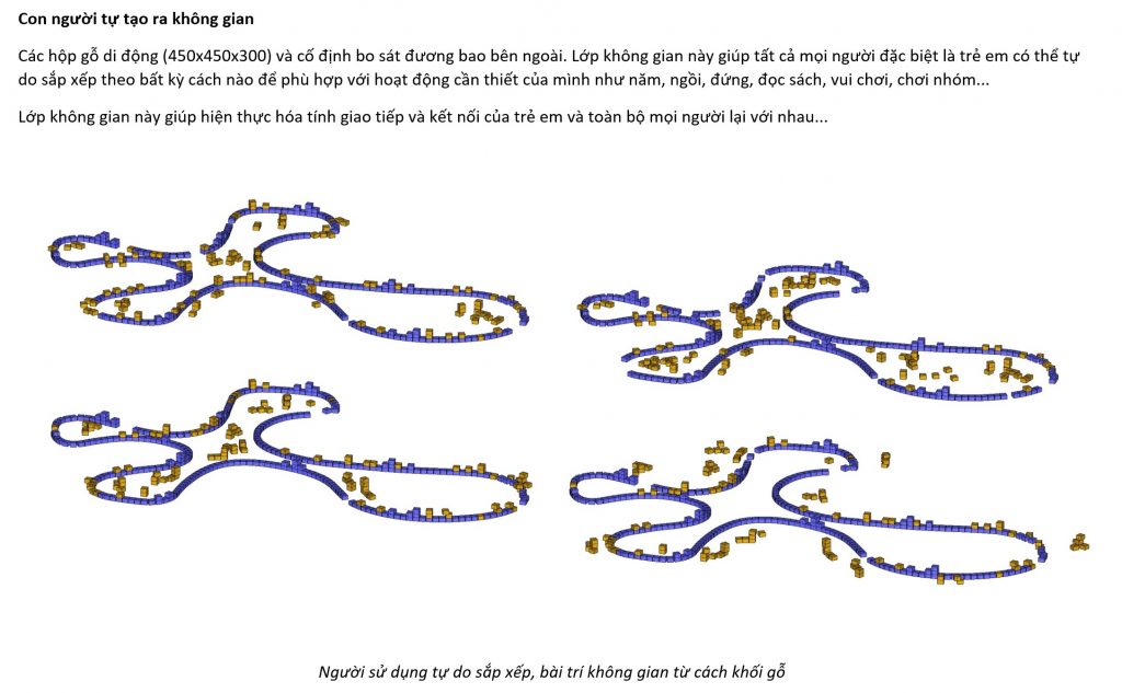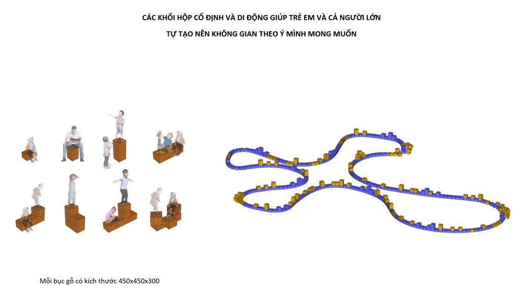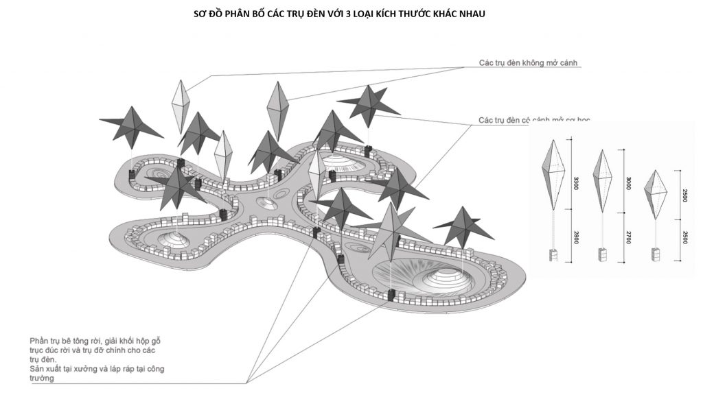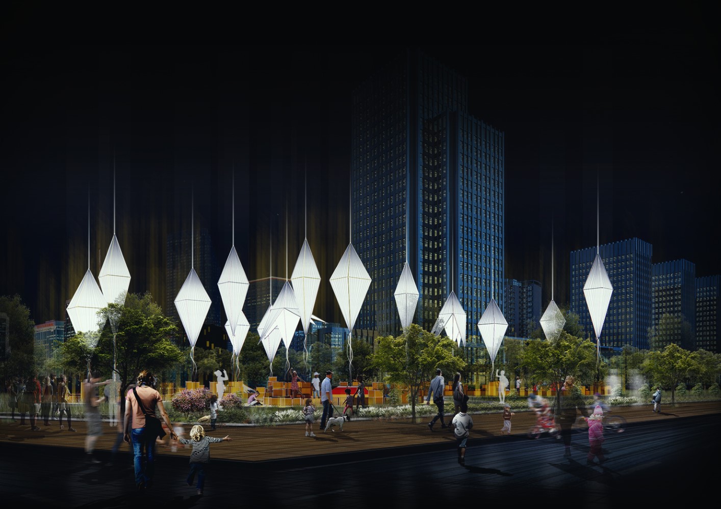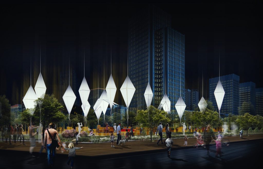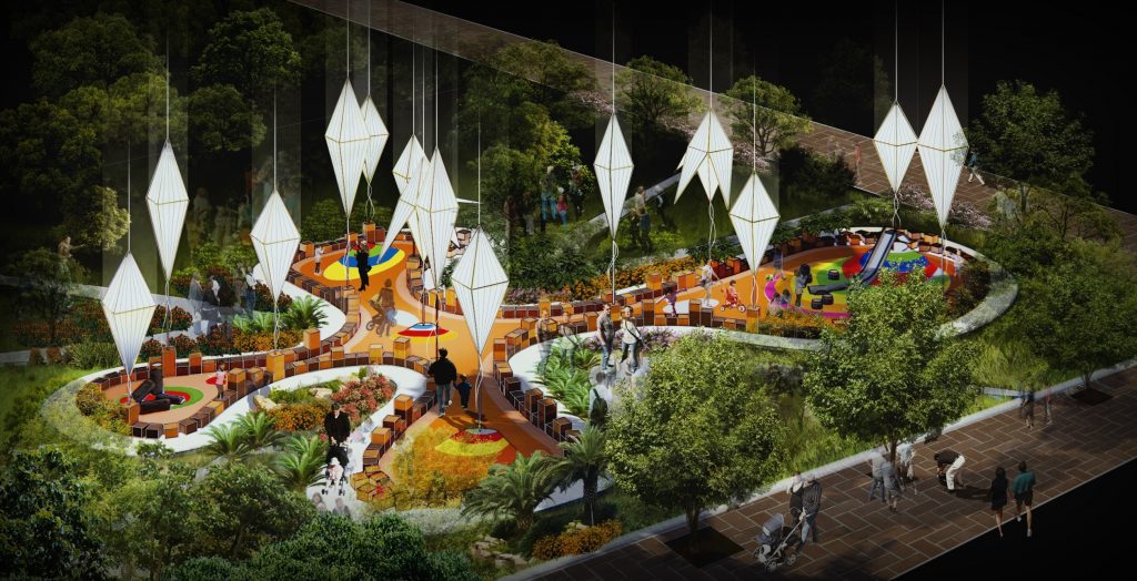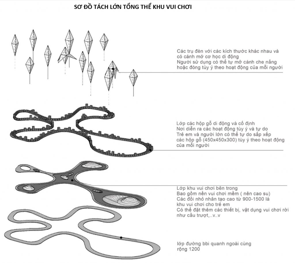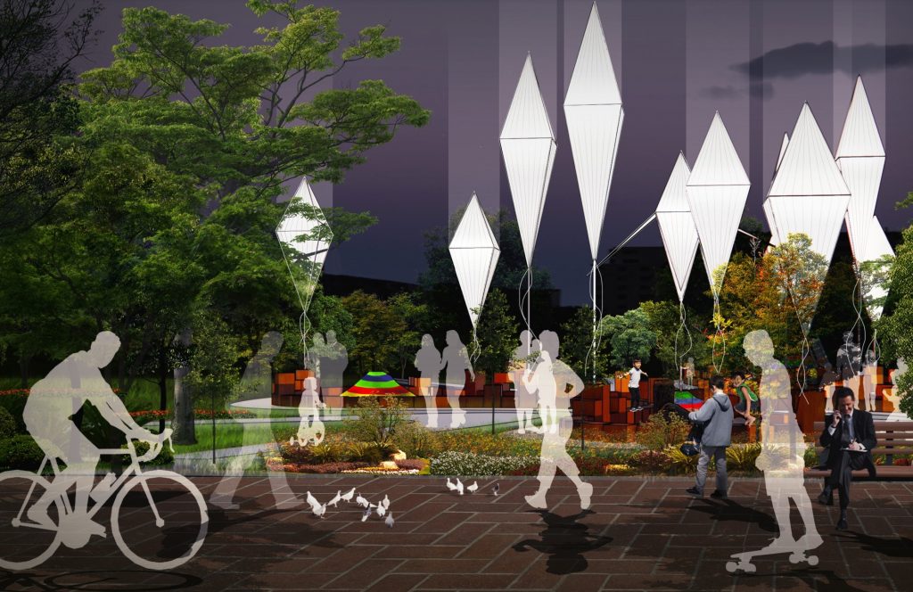 Đối với trẻ nhỏ có lẻ việc giúp lứa tuổi này tiếp tục mơ mộng, nuôi dưỡng tự do các ước mơ sẽ là mục đích cao nhất của giáo dục. Với những nhóm trẻ ở khu dân cư, thành thị, thời gian được ra công viên nhiều nhất chắc là các buối tối khi mà bố mẹ đã đi làm về và dành phần thời gian còn lại của ngày cho con của mình. Vì vậy yêu cầu đặt ra với các trụ đèn điểm nhấn là phải bật lên vào ban đêm, hiện lên trên tầm với của trẻ nhỏ và sáng như những cánh diều lơ lửng, hay giống như các con tàu vũ trụ hay ngôi sao… đó còn tùy vào trí tưởng tượng của mỗi tâm hồn trẻ nhỏ. Thiết kế mong muốn khơi gợi nên trí tưởng tượng và trí tò mò của nhóm trẻ.