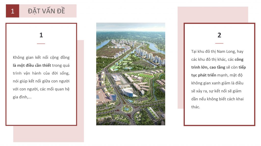 Tại khu đô thị Nam Long, hay các khu đô thị khác, các công trình lớn, cao tầngsẽ còn tiếp tục phát triểnmạnh, mật độ không gian xanh giảm là điều sẽ xảy ra, sự kết nối sẽ giảm dần nếu không biết cách khai thác.