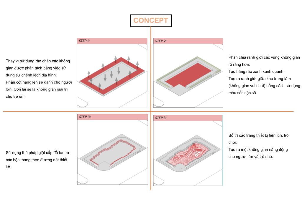 - Khuyến khích những ý tưởng khác cho sân chơi linh hoạt và tiện ích, nhằm phát huy tối đa sự gắn kết cộng đồng với những hoạt động vui khỏe và mang tính giáo dục.