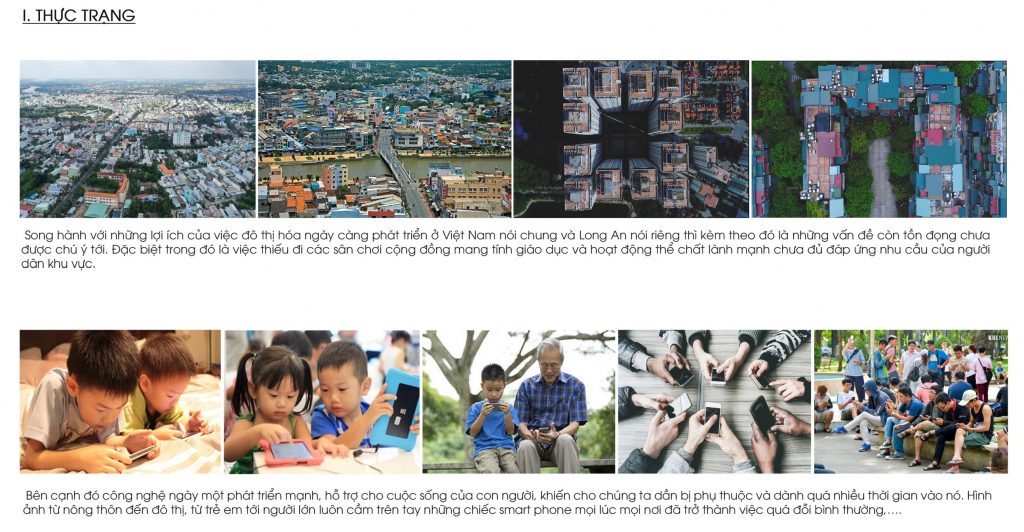 Song hành với những lợi ích của việc đô thị hóa ngày càng phát triển ở Việt Nam nói chung và Long An nói riêng thì kèm theo đó là những vấn đề còn tồn đọng chưa được chú ý tới. Đặc biệt trong đó là việc thiếu đi các sân chơi cộng đồng mang tính giáo dục và hoạt động thể chất lành mạnh chưa đủ đáp ứng nhu cầu của người dân khu vực.