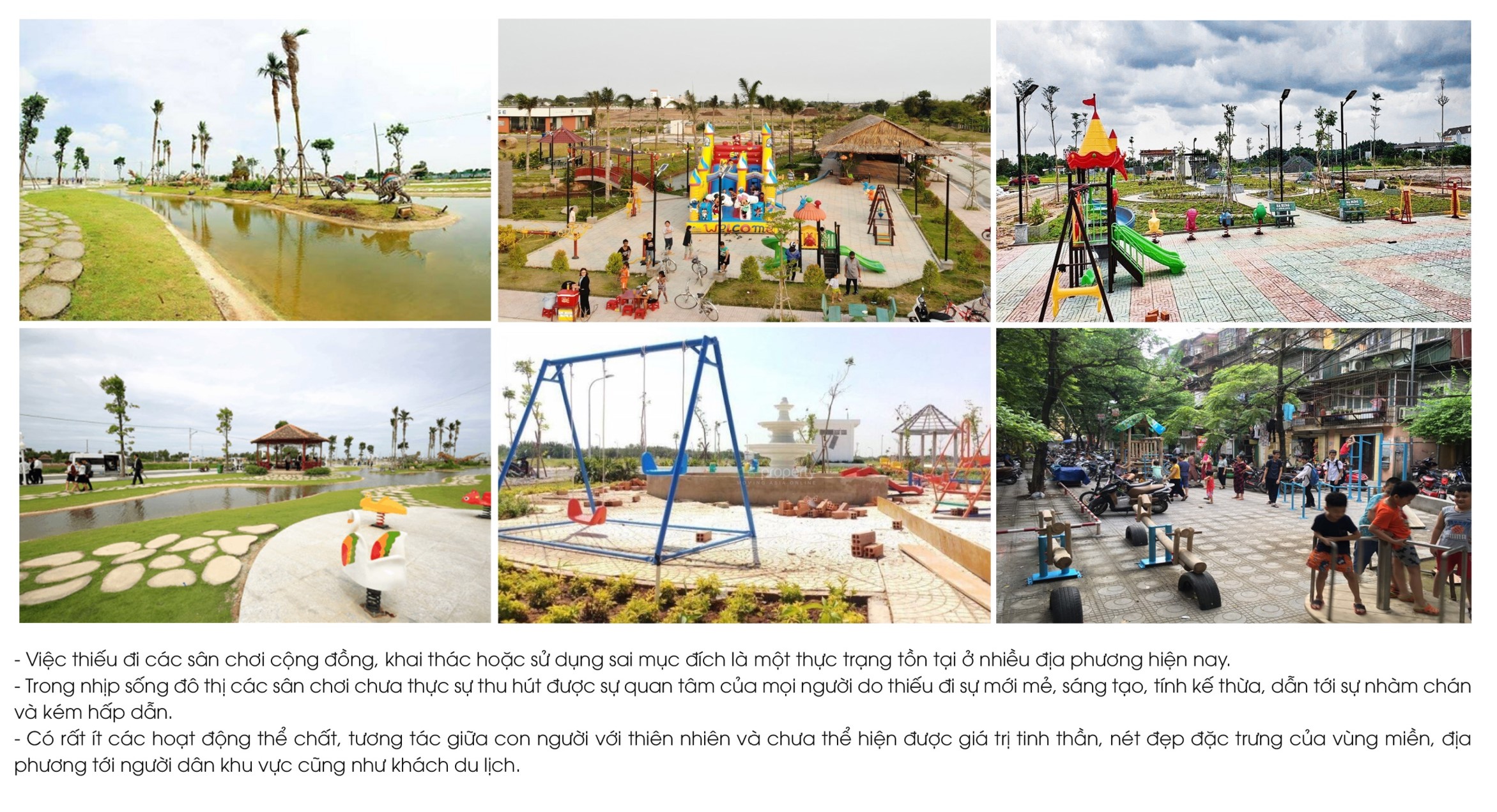 Trong nhịp sống đô thị các sân chơi chưa thực sự thu hút được sự quan tâm của mọi người do thiếu đi sự mới mẻ, sáng tạo, tính kế thừa, dẫn tới sự nhàm chán và kém hấp dẫn.