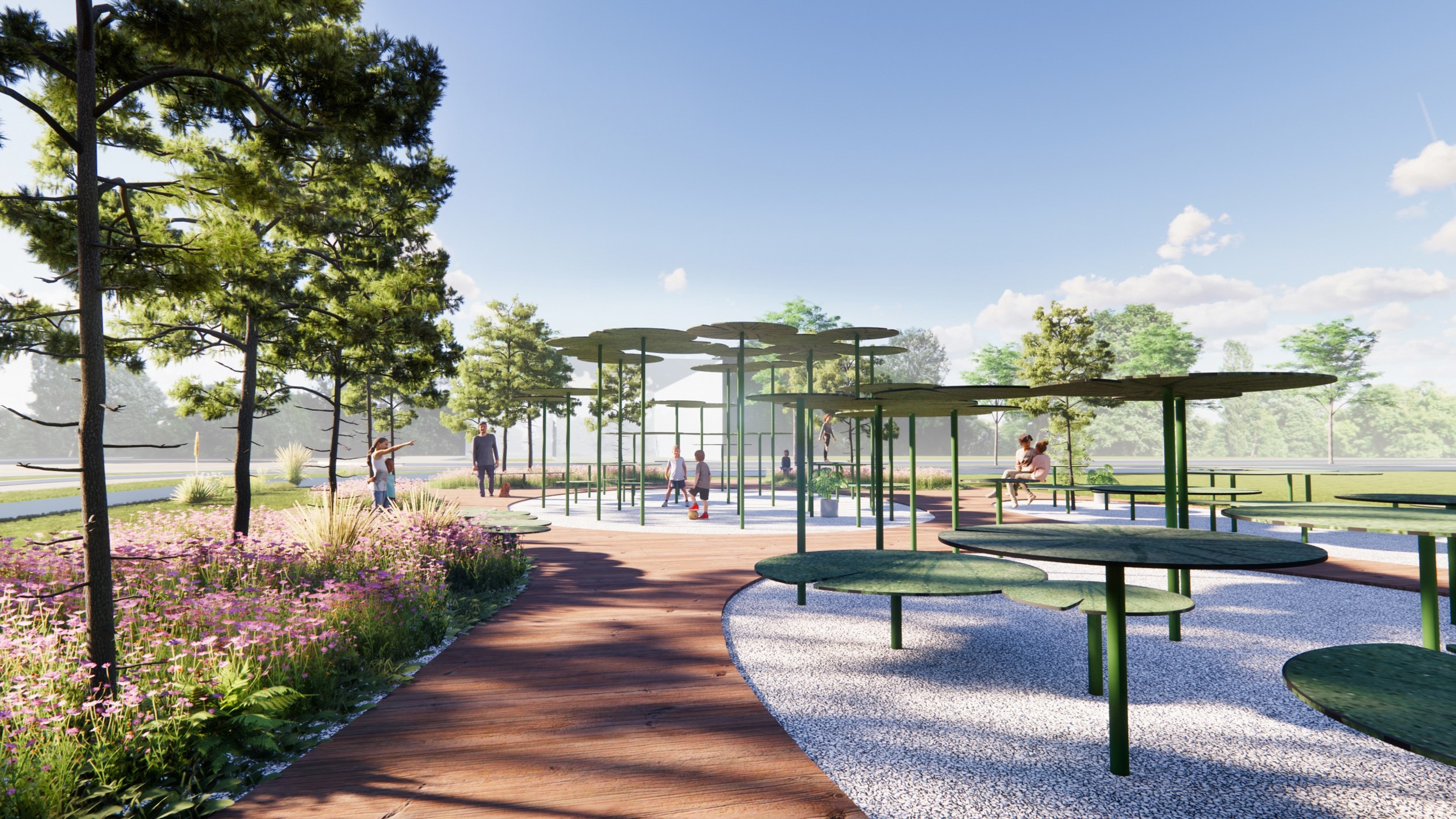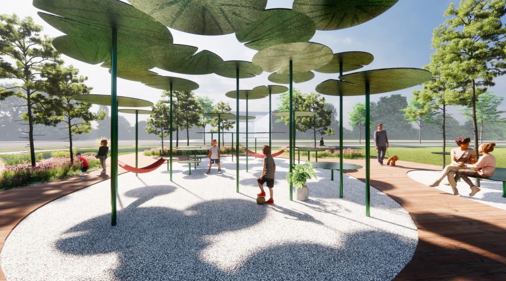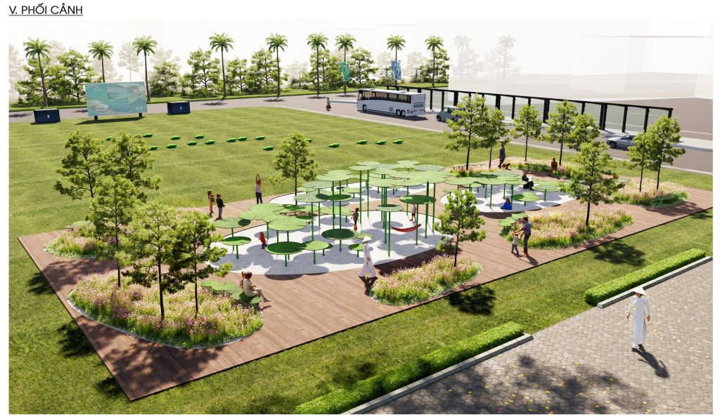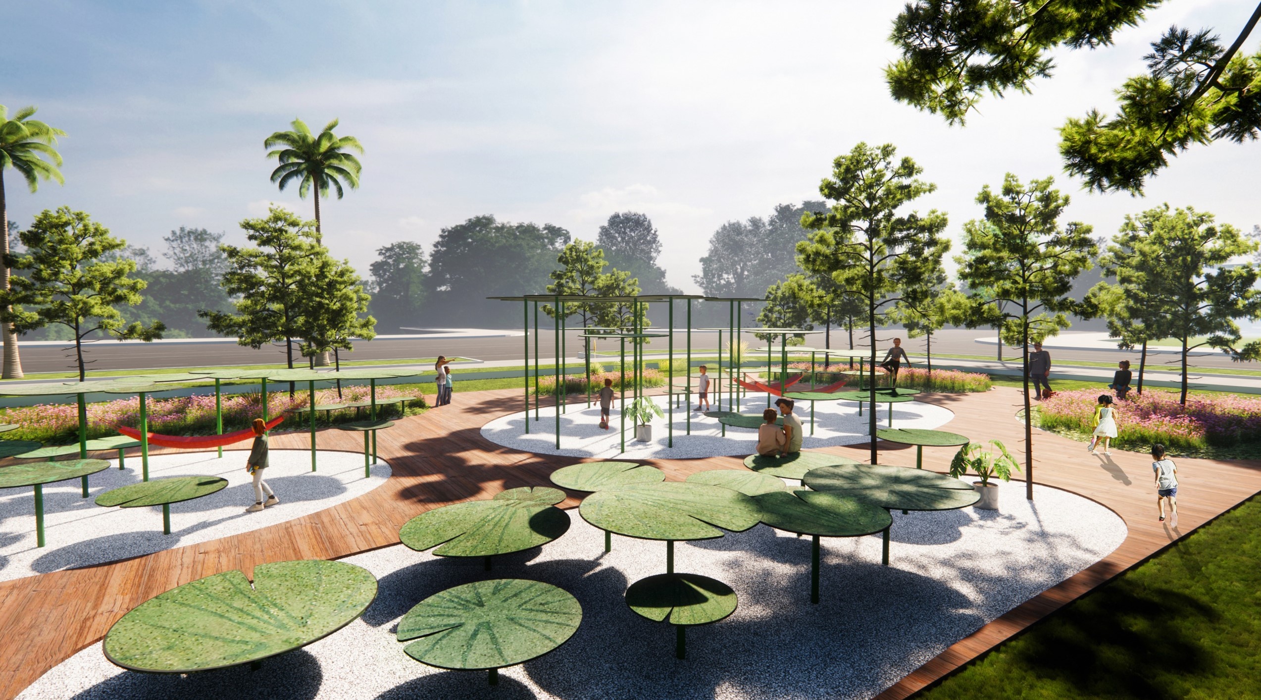 Lấy cảm hứng tươi đẹp từ tự nhiên, chúng tôi đã chiếm lấy được một phần cảnh quan nơi con người có thể sống hài hòa với môi trường và đưa ra ý tưởng tạo hình cho sân chơi này như một “cánh đồng sen”, một không gian kết nối để tất cả mọi người có thể hòa mình vào thiên nhiên, trải nghiệm các hoạt động thể chất tự đề xuất tại đó hoặc cũng là nơi để gợi nhớ về những phần ký ức tuổi thơ…