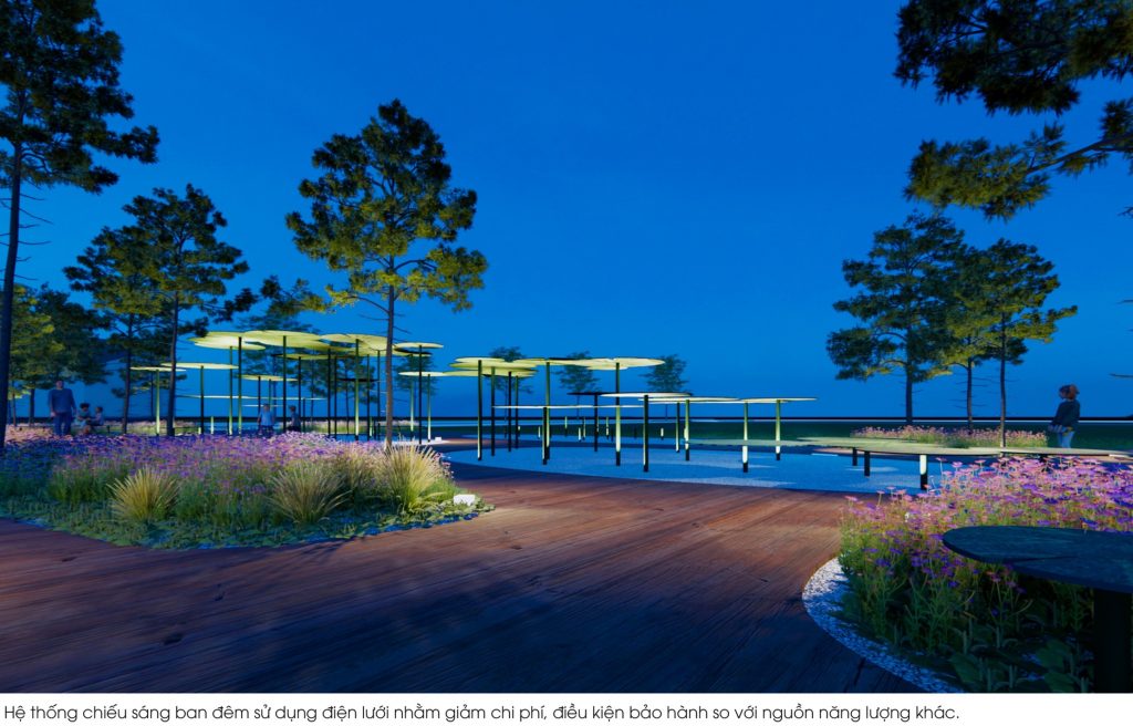 Hệ thống chiếu sáng ban đêm sử dụng điện lưới nhằm giảm chi phí, điều kiện bảo hành so với nguồn năng lượng khác.