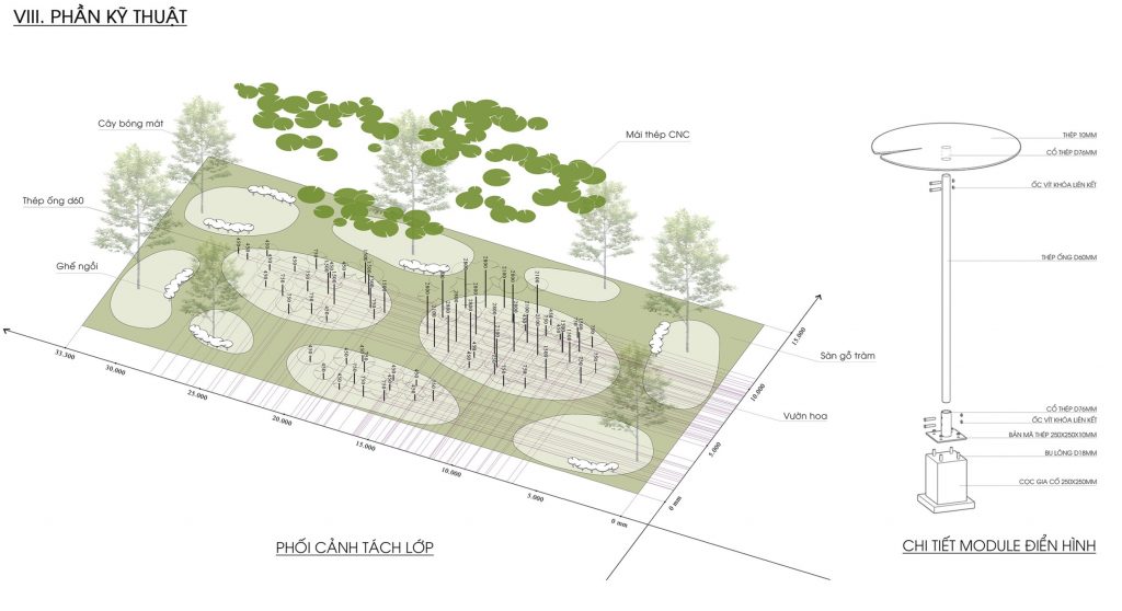 DIỆN TÍCH: diện tích nền (500m2), diện tích mái bao che (120m2)