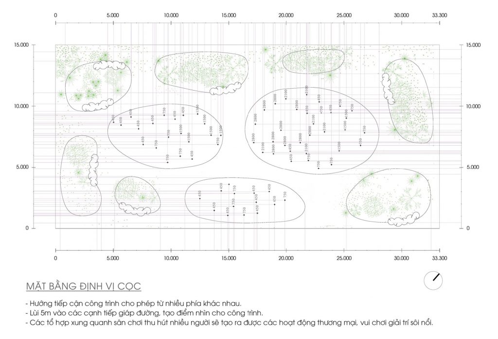 Lùi 5m vào các cạnh tiếp giáp đường, tạo điểm nhìn cho công trình.
