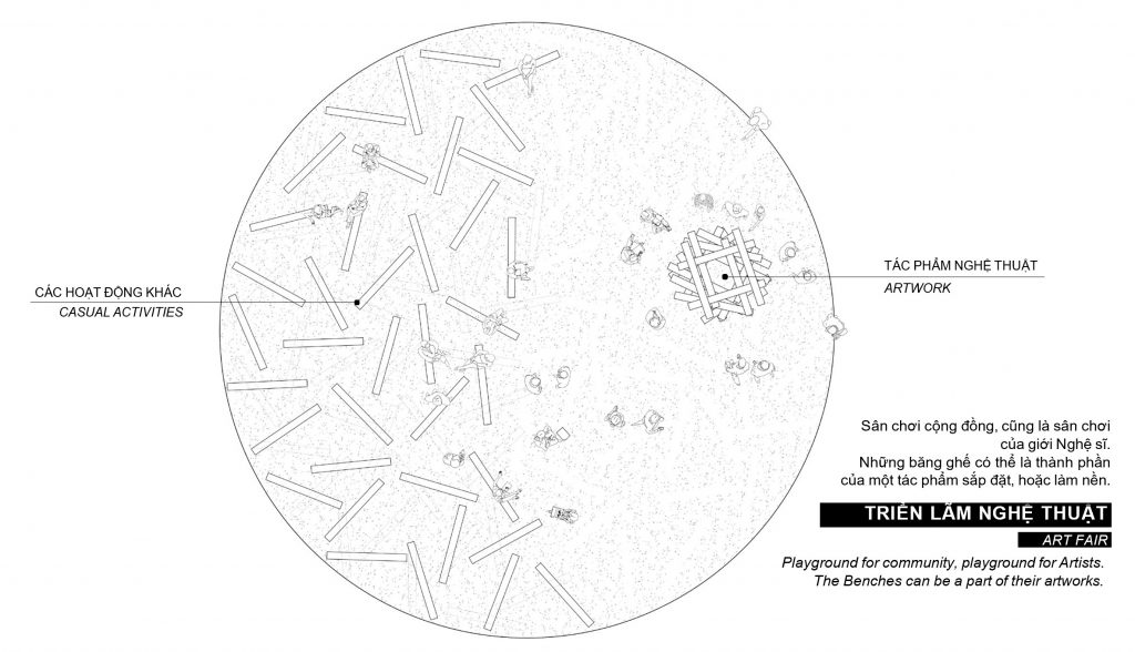 Các băng ghế dài cũng đóng vai trò quan trọng trong quá trình biến đổi công năng của sân chơi theo các sự kiện của cộng đồng.