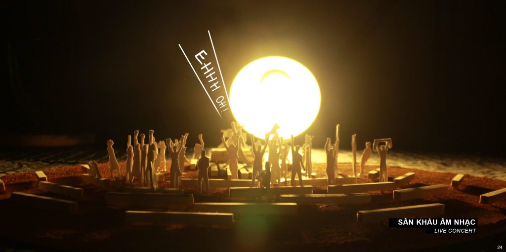 Những chiếc ghế băng dài trở thành bức tranh nền khi kết hợp với những sự kiện mang tính trình diễn.