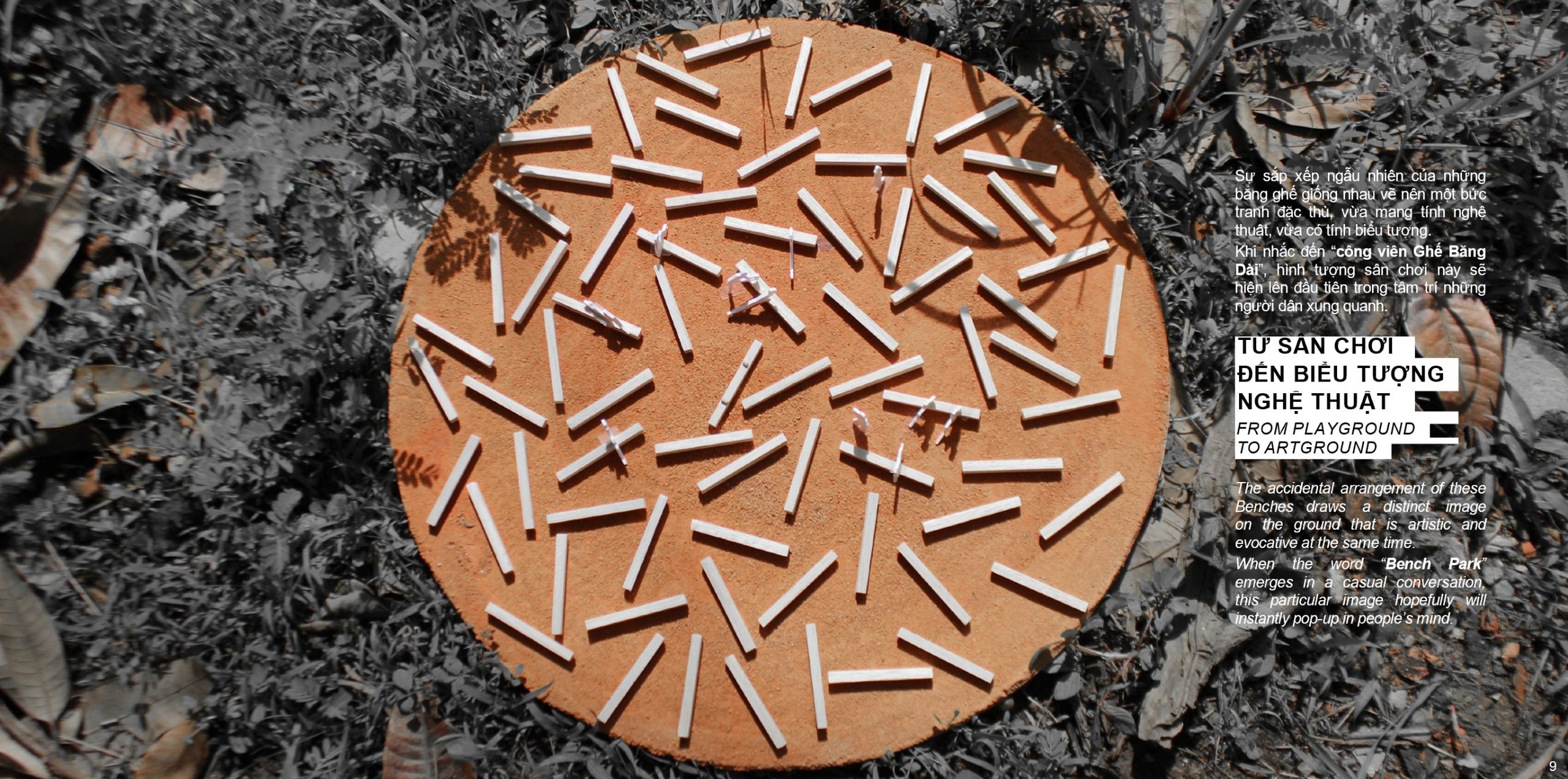 Sân chơi cộng đồng, cũng là sân chơi của giới Nghệ sĩ. Những băng ghế có thể là thành phần của một tác phẩm sắp đặt, hoặc làm nền.