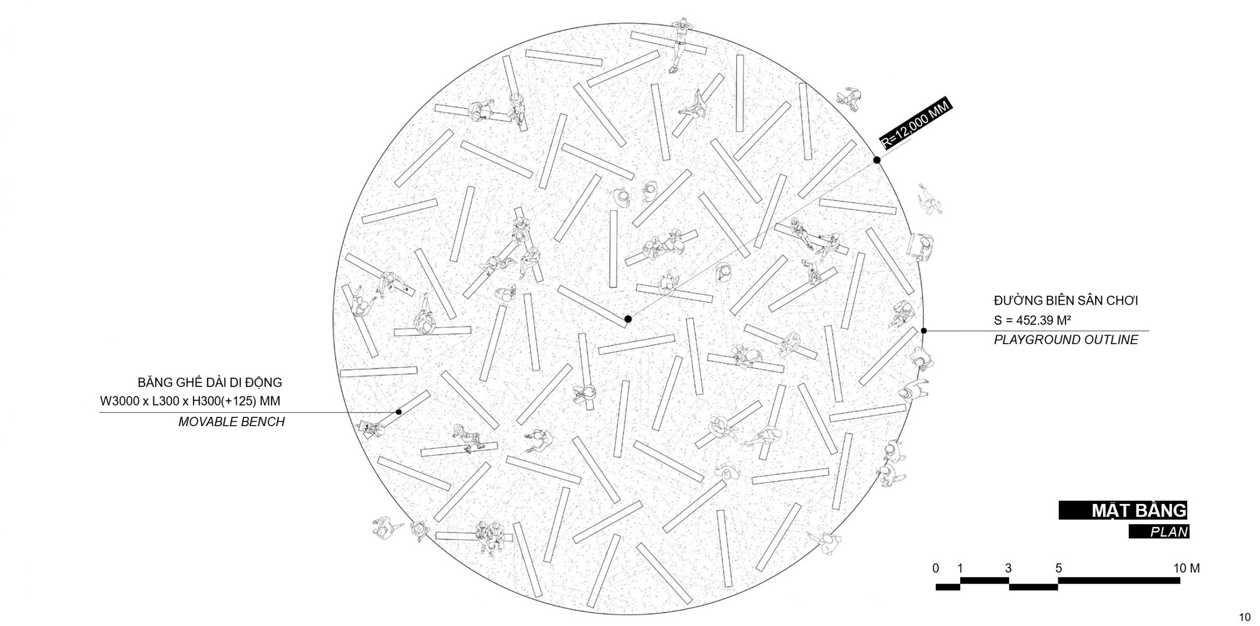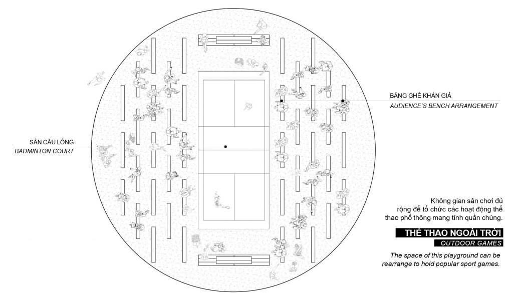 Các băng ghế dài cũng đóng vai trò quan trọng trong quá trình biến đổi công năng của sân chơi theo các sự kiện của cộng đồng.
