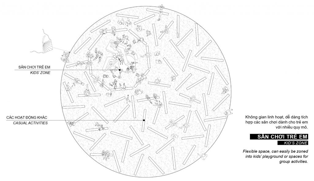 Không gian linh hoạt, dễ dàng tích hợp các sân chơi dành cho trẻ em với nhiều quy mô.