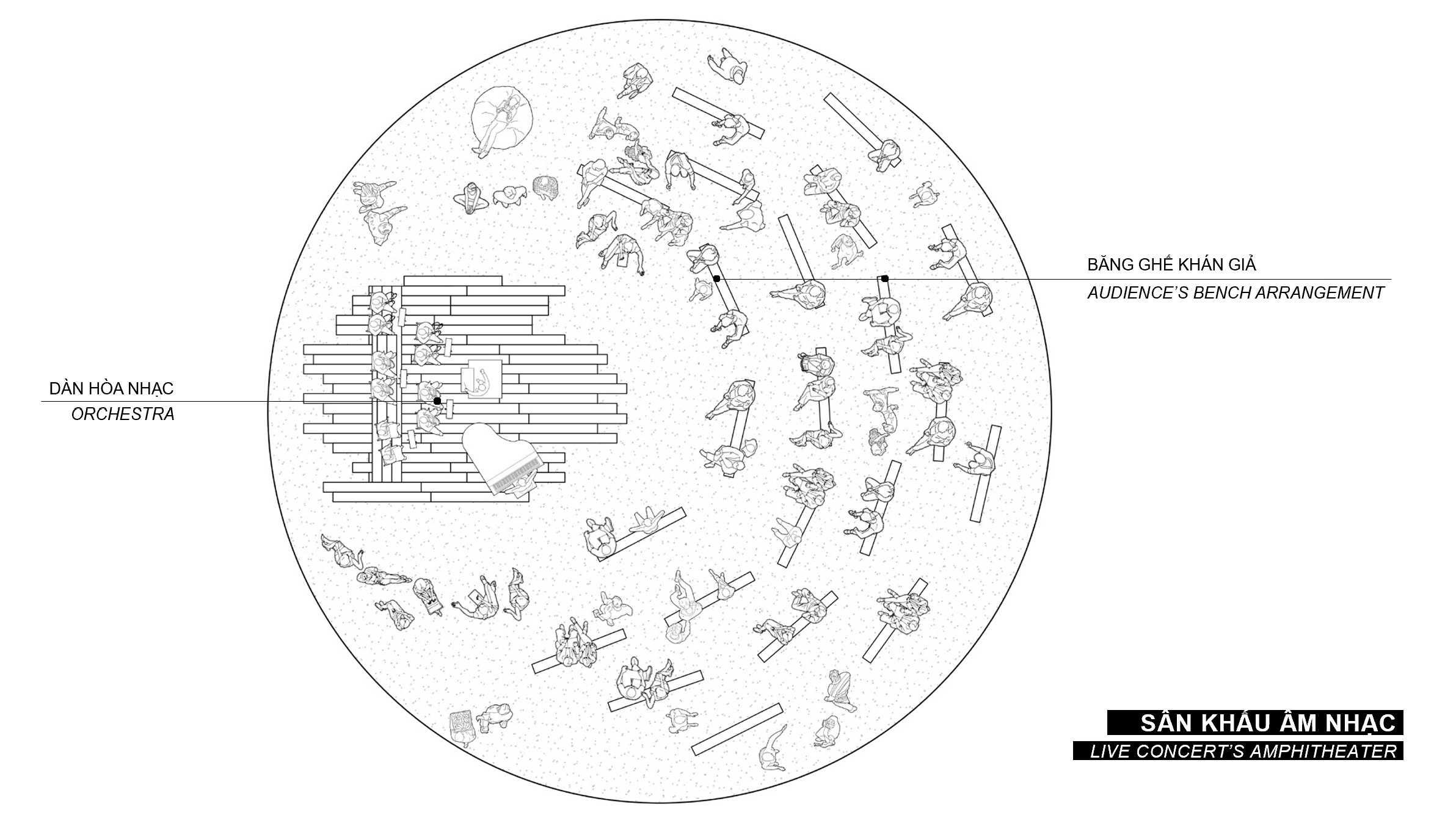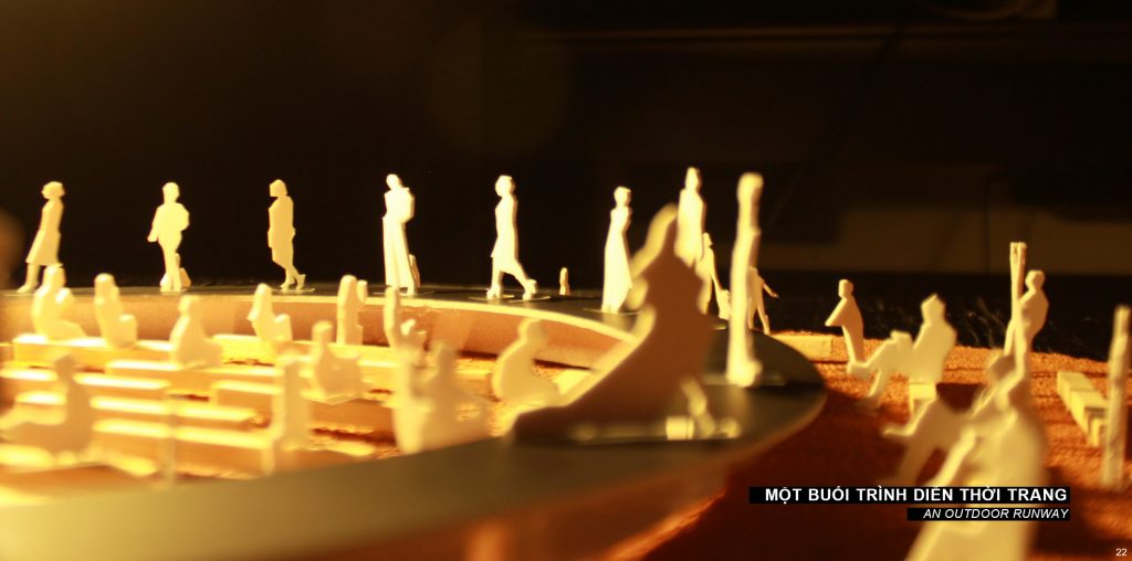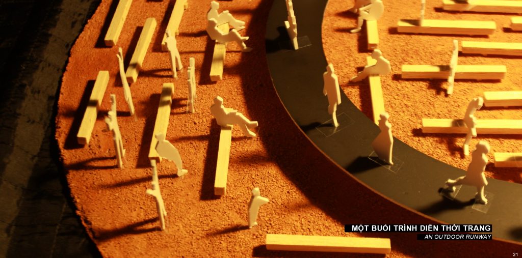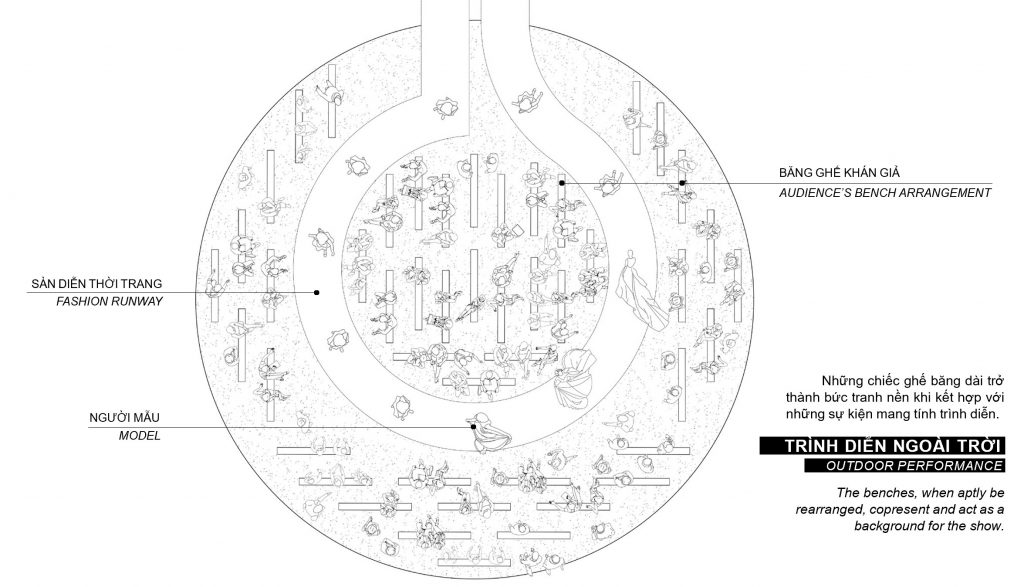 Những chiếc ghế băng dài trở thành bức tranh nền khi kết hợp với những sự kiện mang tính trình diễn.