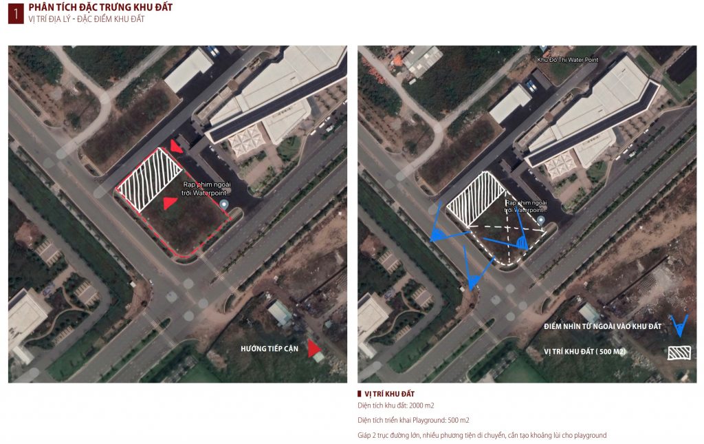 Sân chơi công cộng rộng 500 m² trong khu đất 2000 m² là trung tâm của cộng đồng cư dân khu đô thị Waterpoint trong khu vực phía Tây Nam thành phố Hồ Chí Minh. Nó được thiết kế không chỉ là một khu vui chơi cho trẻ em, mà còn là một nơi giao tiếp xã hội hòa nhập cho tất cả cư dân và người dùng từ các khu vực lân cận. Thiết kế của sân chơi không chỉ phù hợp với khái niệm tổng thể của khu định cư mà còn mang đến cho khu vực lân cận bản sắc của nó một cách mang tính biểu tượng.