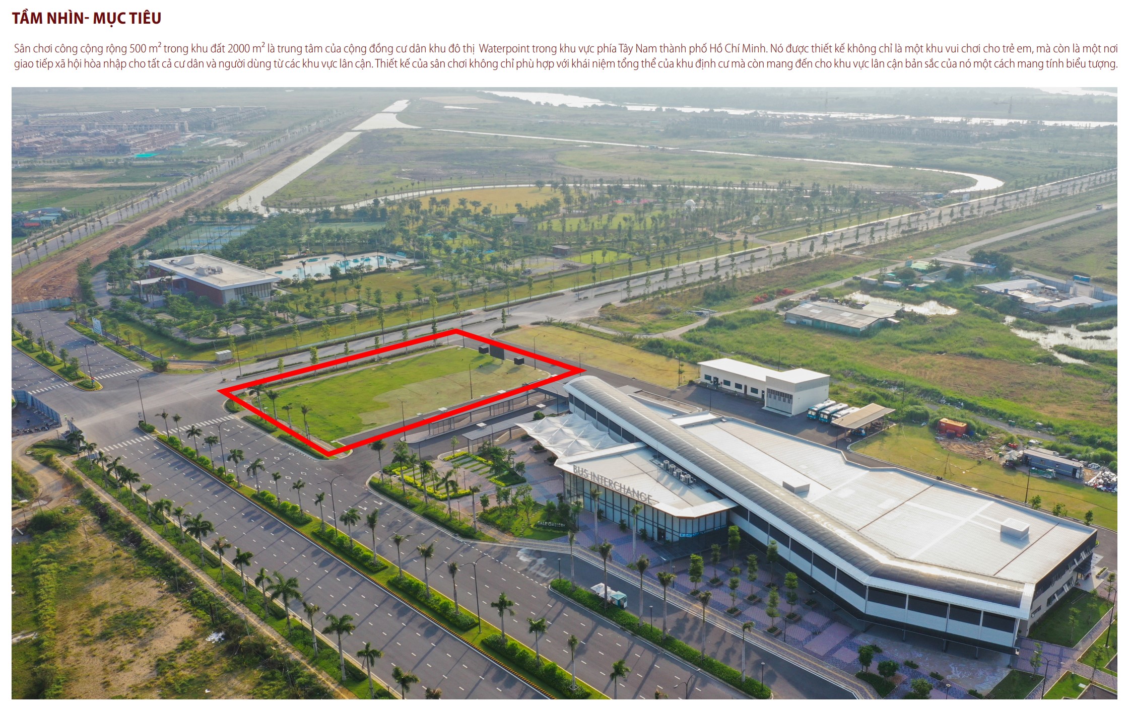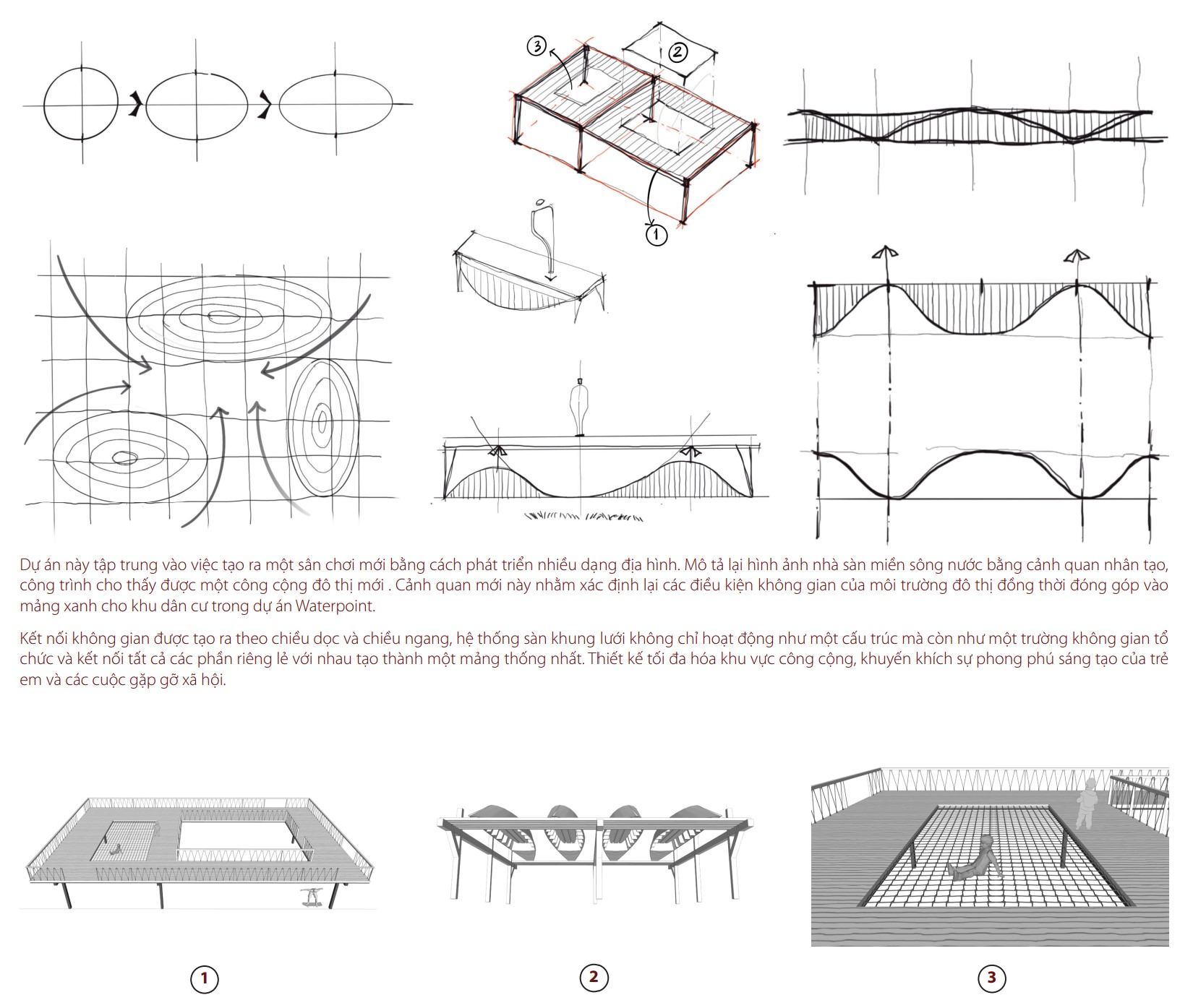 Dự án này tập trung vào việc tạo ra một sân chơi mới bằng cách phát triển nhiều dạng địa hình. Mô tả lại hình ảnh nhà sàn miền sông nước bằng cảnh quan nhân tạo, công trình cho thấy được một công cộng đô thị mới . Cảnh quan mới này nhằm xác định lại các điều kiện không gian của môi trường đô thị đồng thời đóng góp vào mảng xanh cho khu dân cư trong dự án Waterpoint.